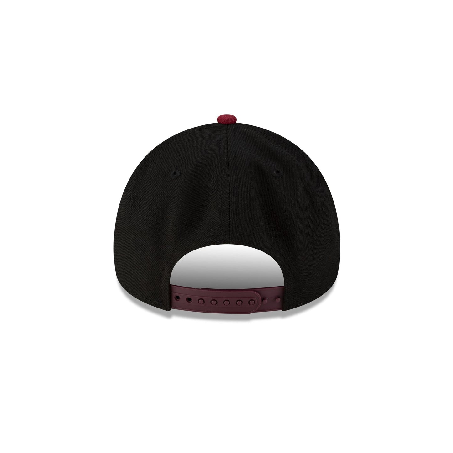 The Arizona State Sun Devils Hand Signs Sidepatch 9FORTY A-Frame Snapback features an embroidered Sun Devils logo at the front panels with the team's had sign at the right-wear side. Additional details include a snapback closure at the rear and a gray undervisor.