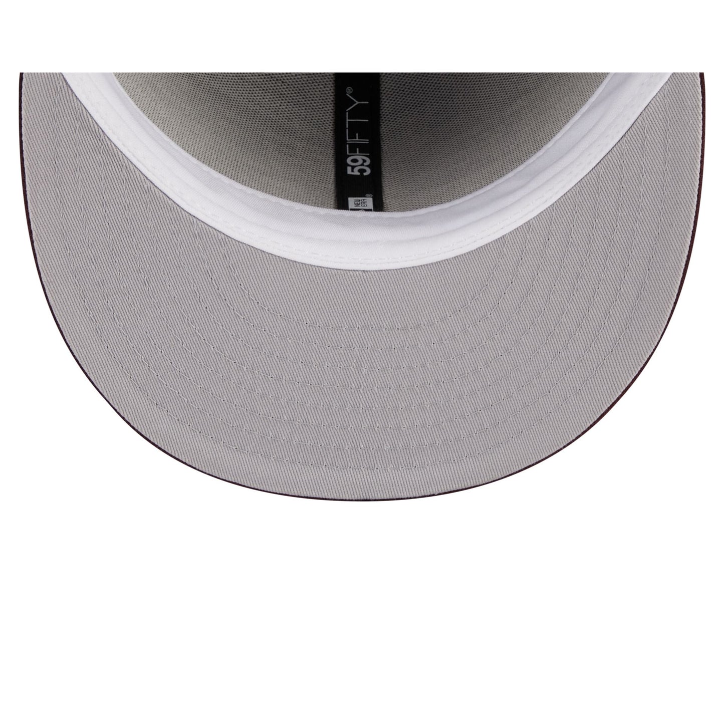 The Arizona State Sun Devils Maroon 59FIFTY Fitted Cap features an embroidered Sun Devils logo at the front panels with a matching team wordmark at the rear and a gray undervisor.