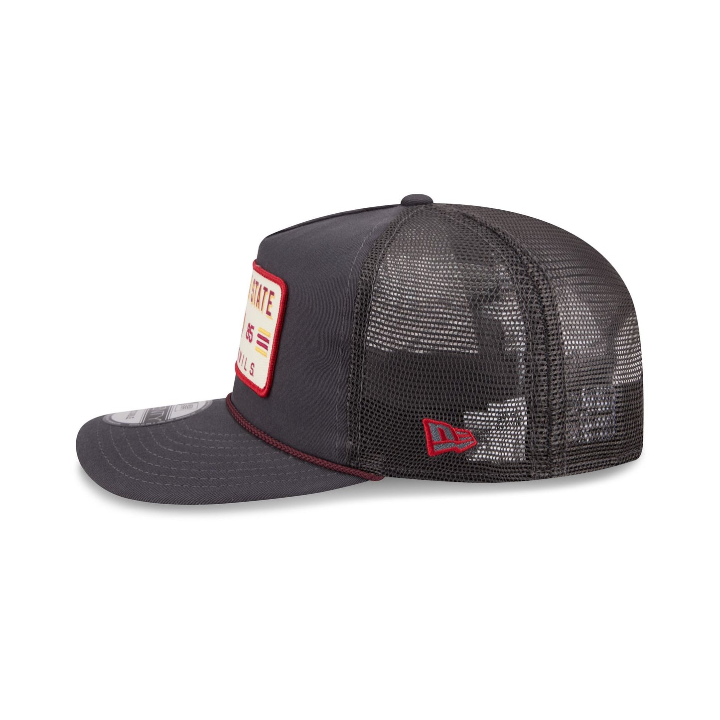 The Arizona State Sun Devils Washed Graphite 19TWENTY Trucker features an embroidered Sun Devils patch at the front panels against a soft washed fabrication. Additional details include an adjustable snapback closure at a mesh rear and a gray undervisor.