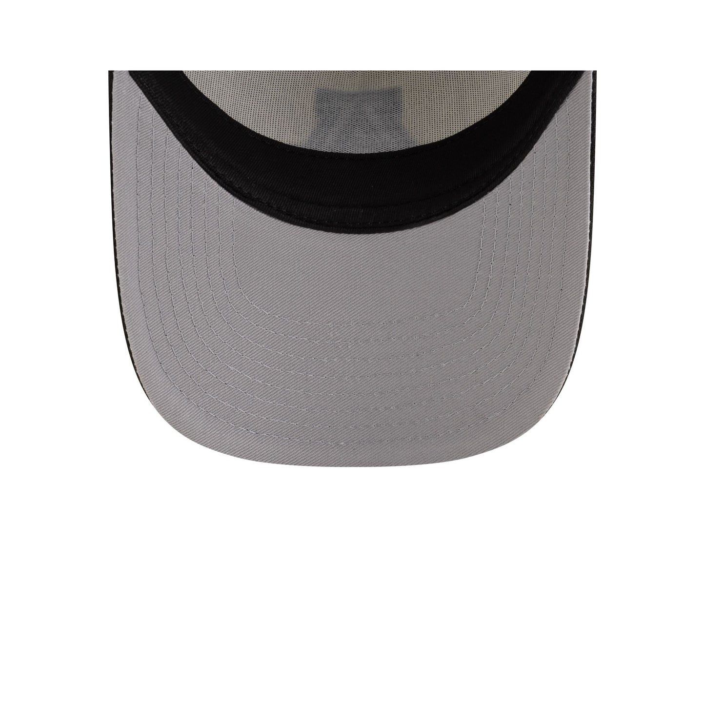 The Arizona Wildcats Chrome Black 9FORTY A-Frame Trucker features an embroidered Wildcats logo at the front panels with a snapback closure at a mesh rear.
