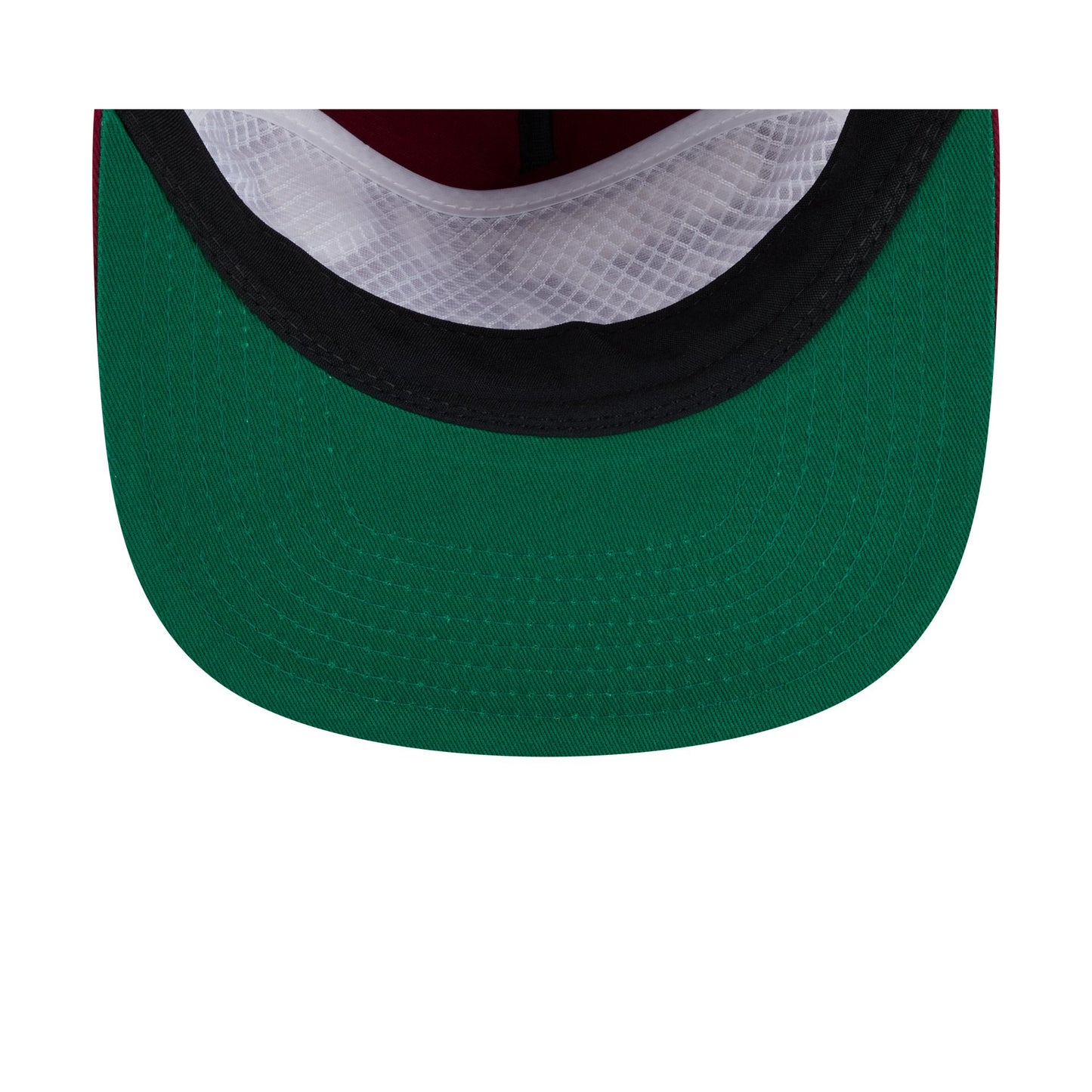 The Arkansas Razorbacks Script 19TWENTY Snapback features an embroidered Razorbacks script and logo patch at the front panel with a snapback closure at the rear and a green undervisor.