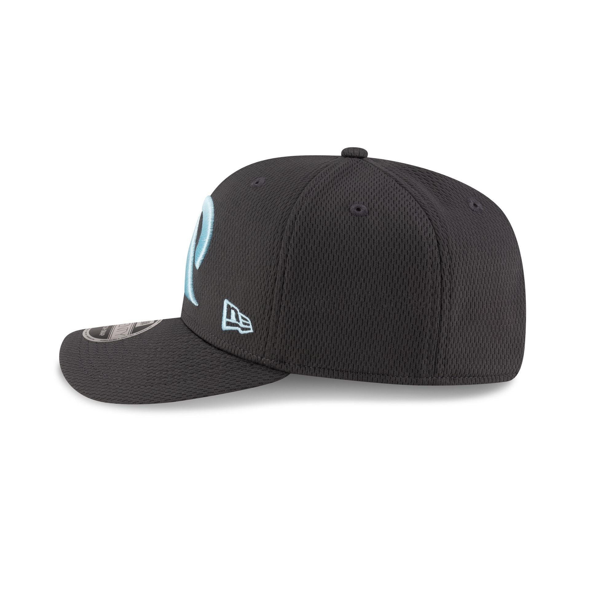 The Arlington Renegades Gray 9SEVENTY Stretch-Snap features an embroidered Renegades logo at the front panels with the New Era Flag at the left. Additional details include a UFL logo above a snapback closure at the rear and a gray undervisor.