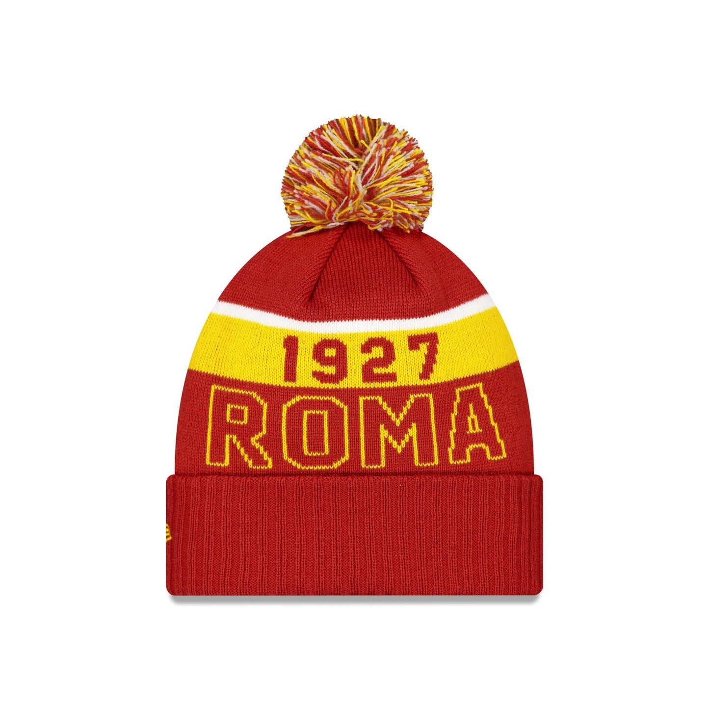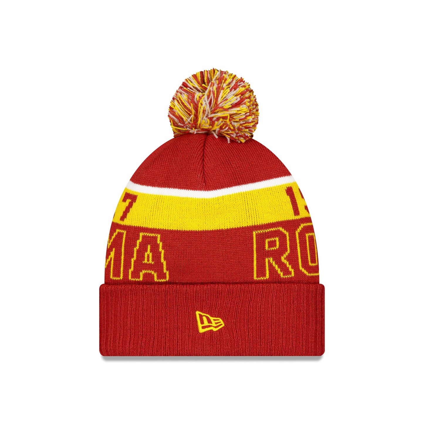 The AS Roma Sport Beanie features an embroidered AS Roma logo at the front cuff with a wordmark at the crown and a one-time removable pom.
