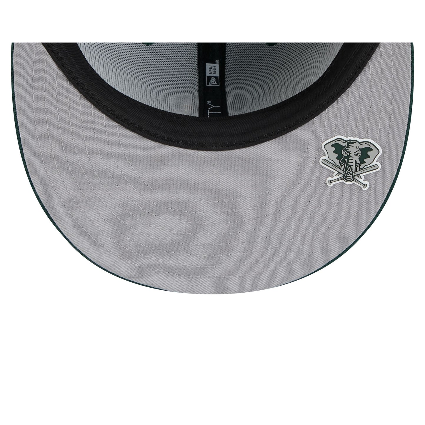 The Athletics 2025 Clubhouse Alt 9FIFTY Snapback features an embroidered Athletics alternate logo at the front panels with a dashmark mesh fabrication throughout. Additional details include a snapback closure at the rear and a silicone logo on a gray undervisor.
