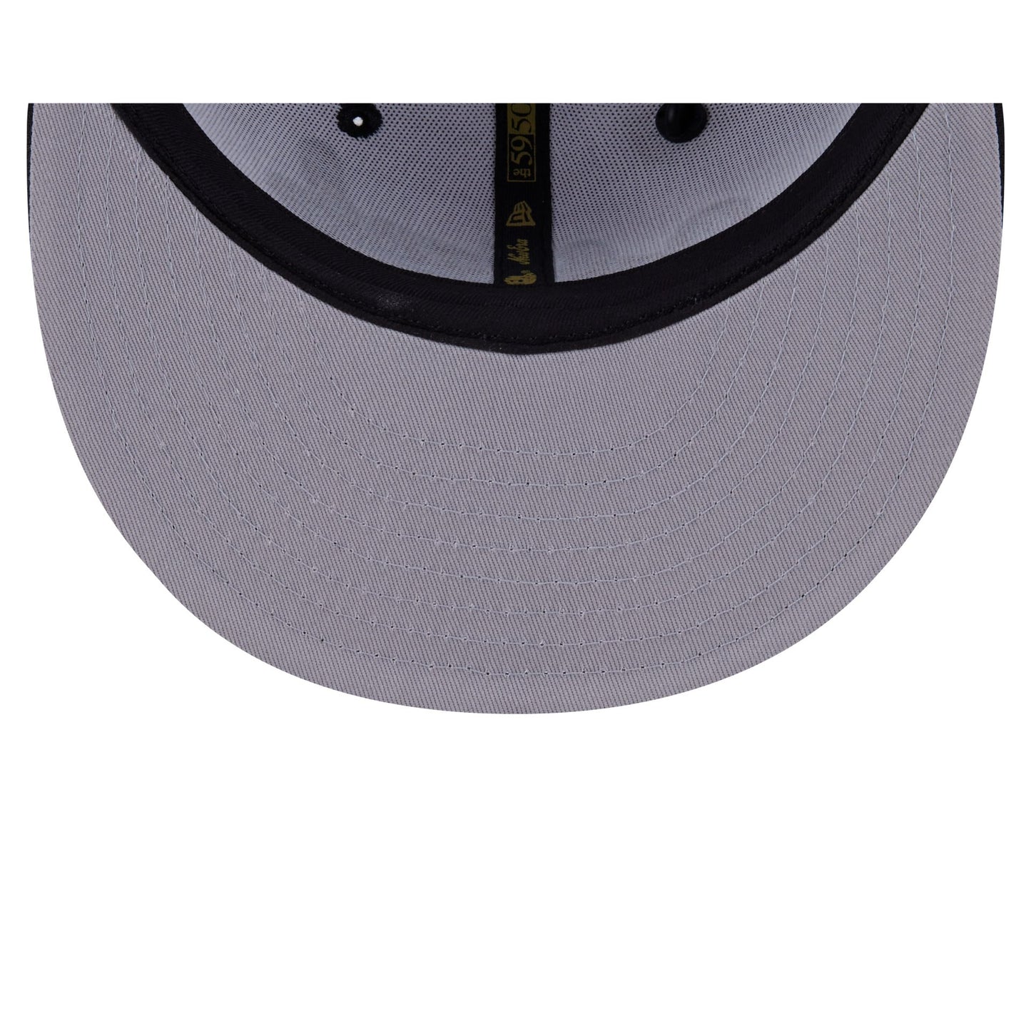 Celebrate 70 years of the iconic Fitted Cap this 59FIFTY Day! The Athletics 70th Anniversary 59FIFTY Fitted Cap features a gold embroidered Athletics Cooperstown wordmark and a 59FIFTY 70th Anniversary pin at the front panels with a matching MLB Batterman logo at the rear. Additional details include a 25th Anniversary patch at the right-wear side, a black visor, and a gray undervisor.