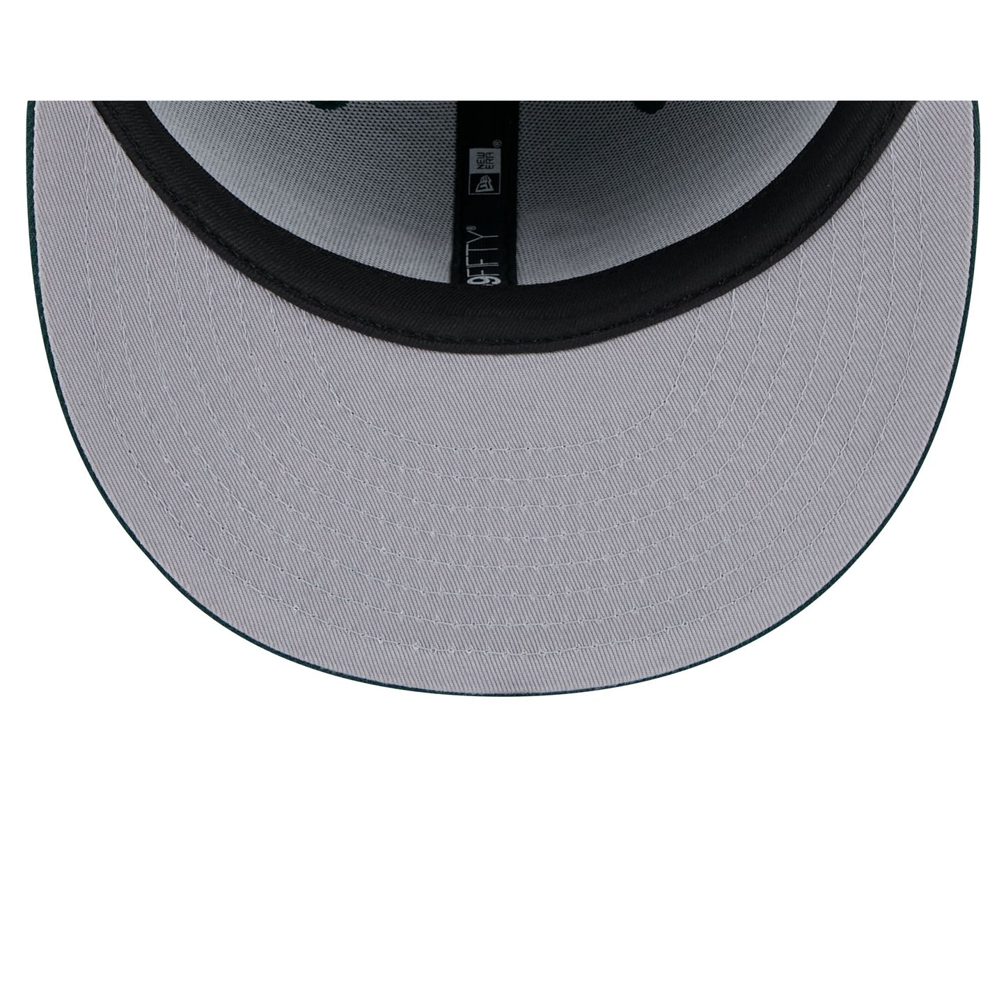 The Athletics Color Pattern 59FIFTY Fitted Cap features an embroidered Athletics logo at the front panels against a floral patterning throughout. Additional details include a matching MLB Batterman logo at the rear and a gray undervisor.