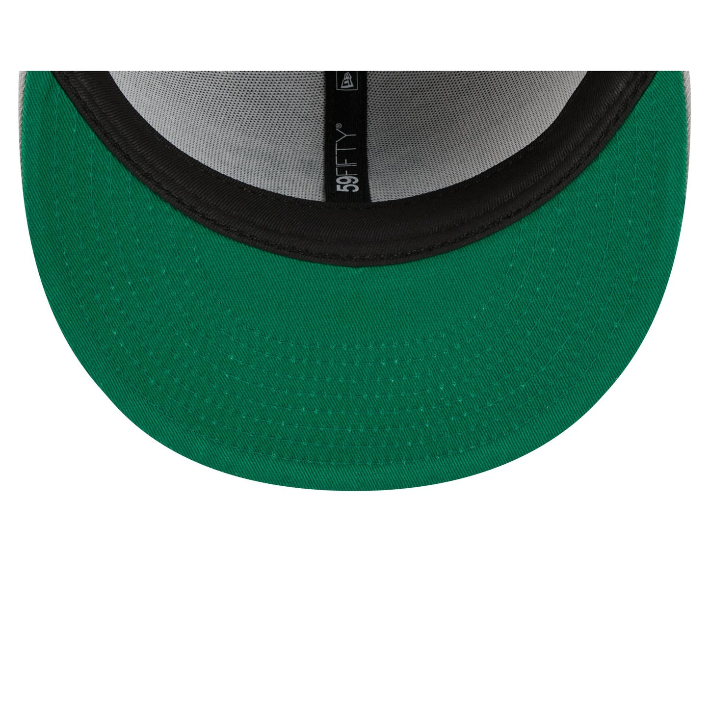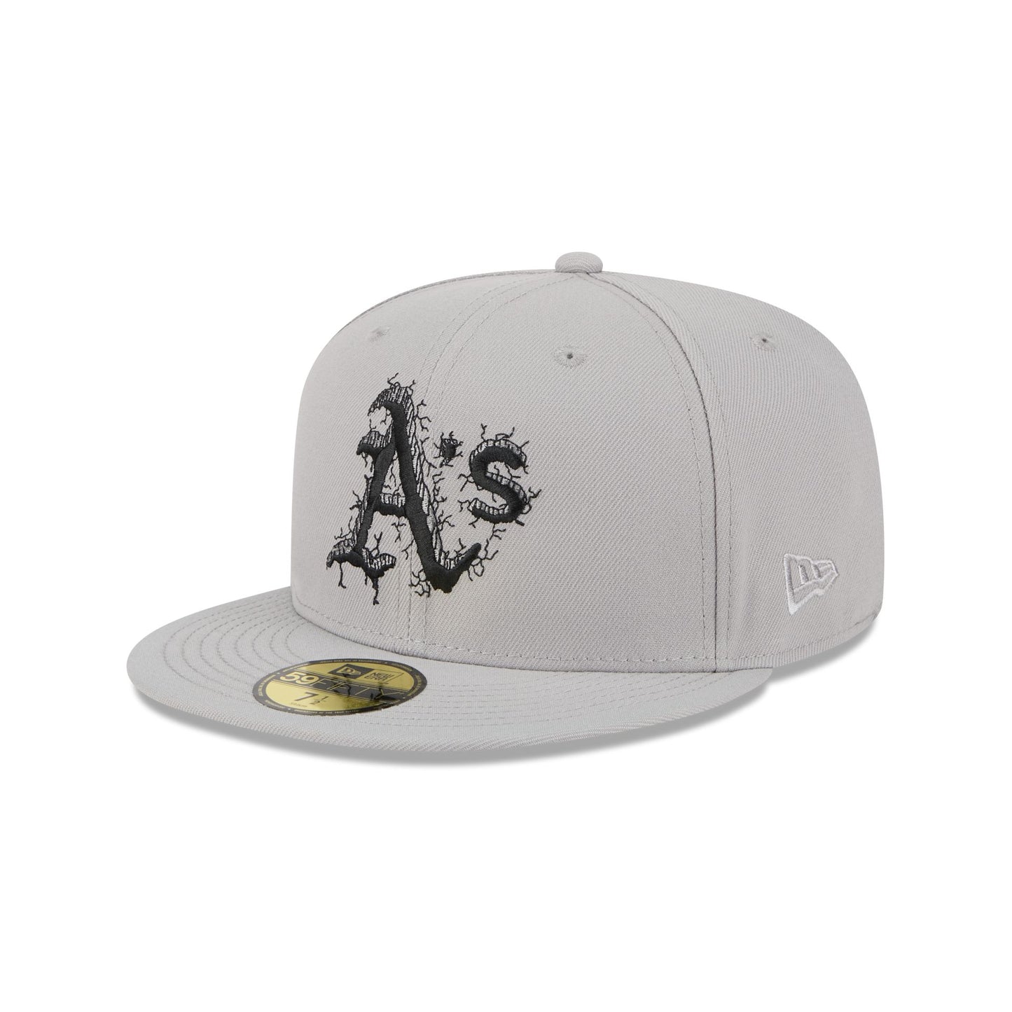 The Athletics Cracked Cement 59FIFTY Fitted Cap features an embroidered crackle effect Athletics logo at the front panel with a matching MLB Batterman logo at the rear, a monochromatic team logo at the right-wear side, and a green undervisor.