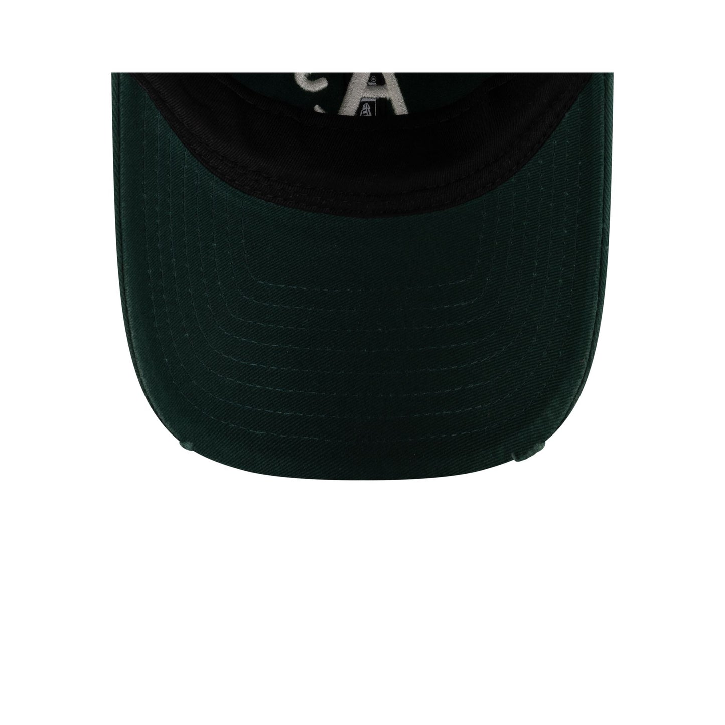 The Athletics Distressed 9TWENTY Adjustable Cap features an embroidered Athletics logo at the front panels with a distressed visor and an adjustable D-Ring closure at the rear.