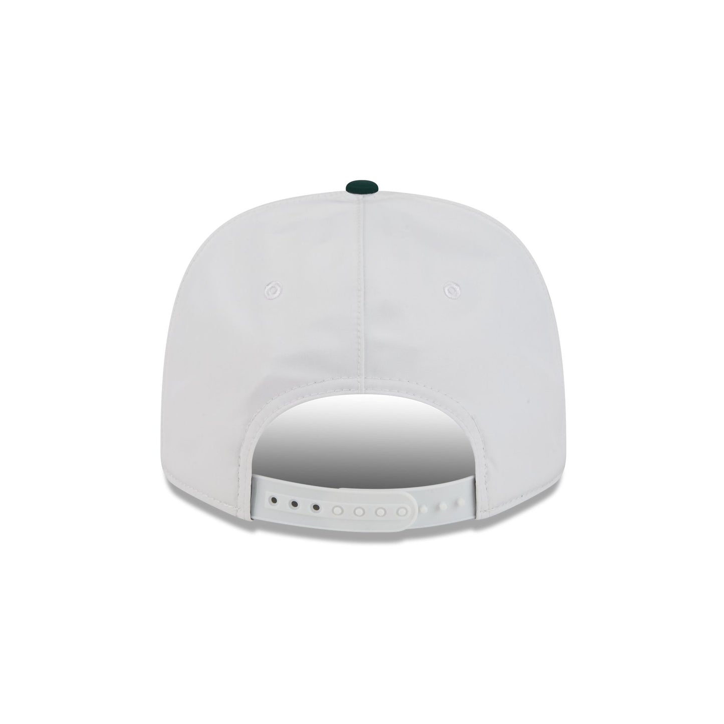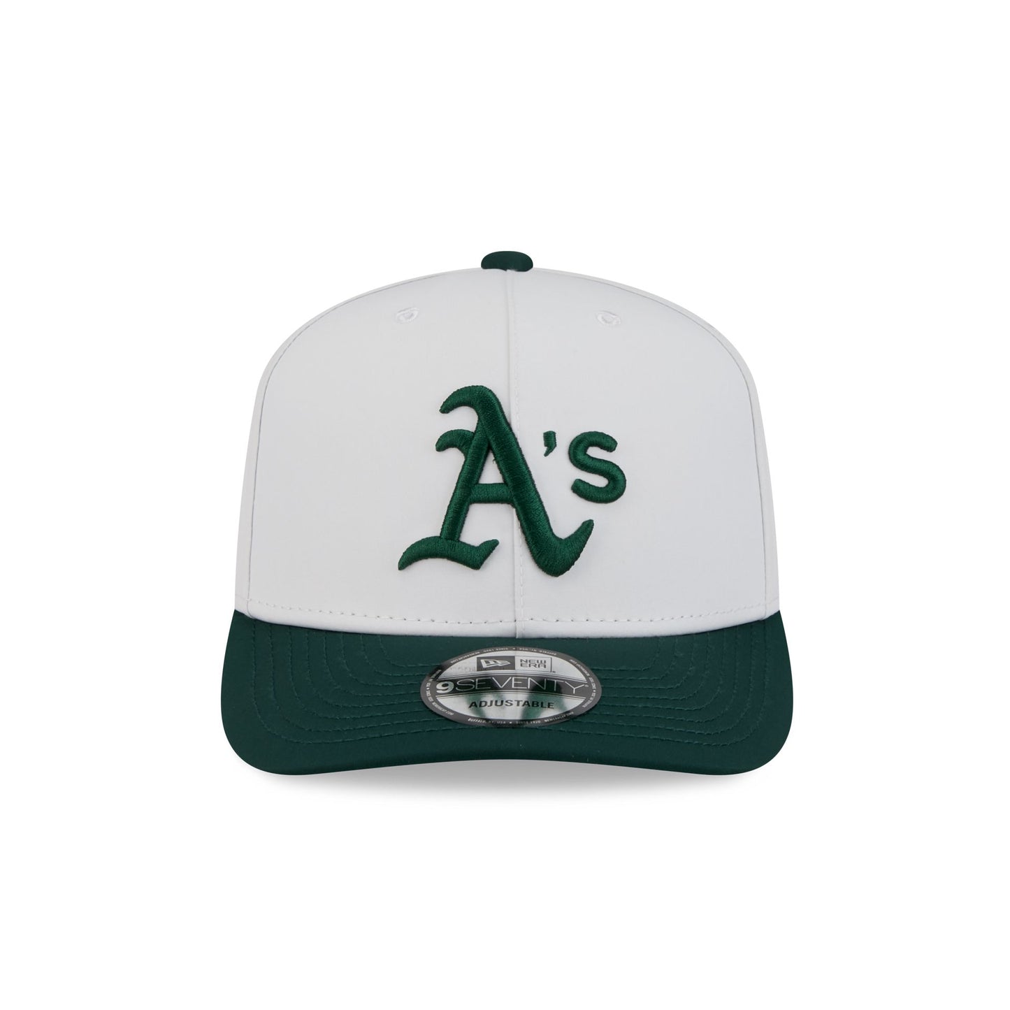 The Athletics GORE-TEX White 9SEVENTY Stretch-Snap features an embroidered Athletics logo at the front panels with a metallic sheen silicone New Era Flag logo and GORE-TEX logo at the left-wear side. Additional details include an adjustable snapback closure at the rear, a gray undervisor, and a polyester fabrication throughout the cap. It is waterproof, breathable, and lightweight.