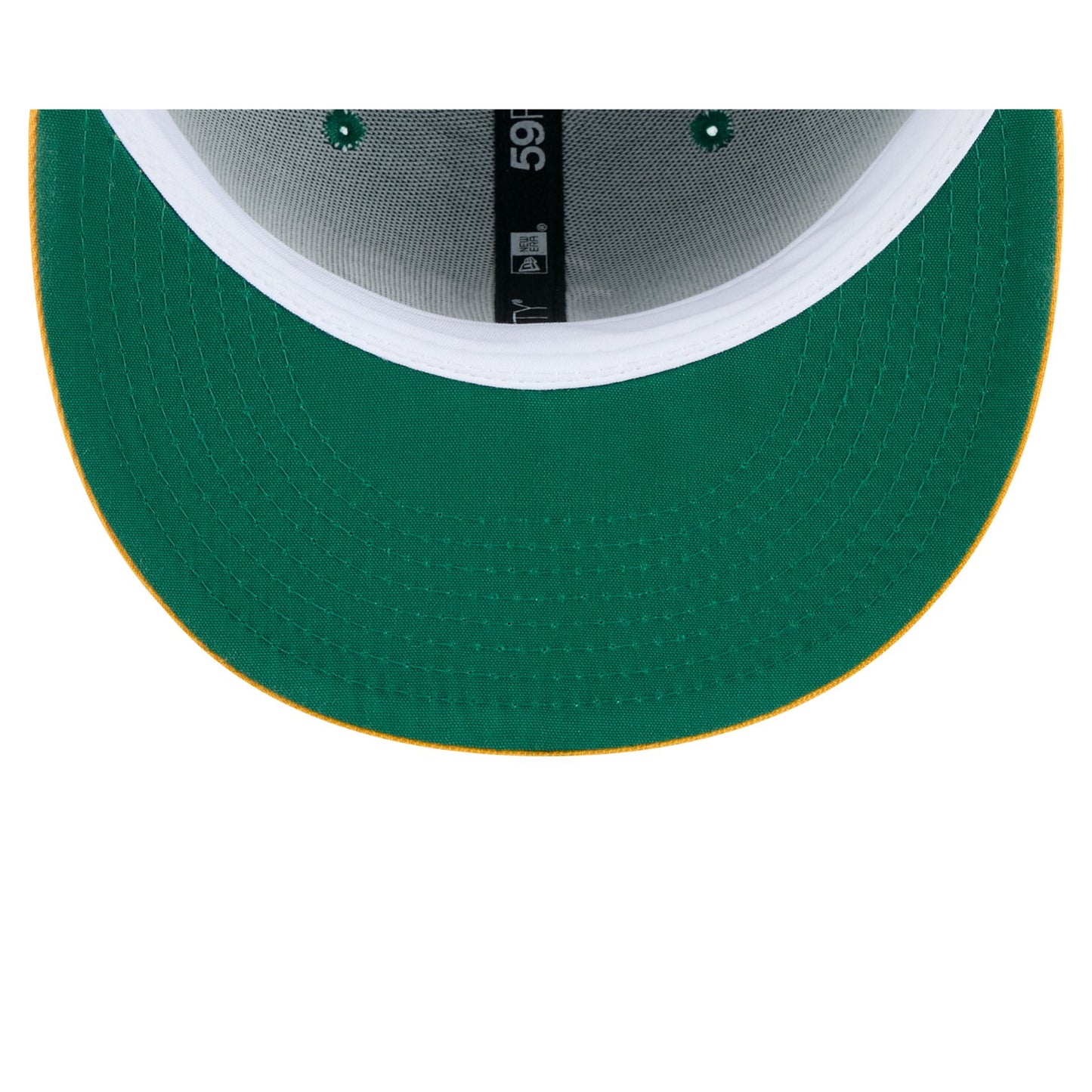 The Athletics Hall of Fame 2025 59FIFTY Fitted Cap features an embroidered Athletics Cooperstown logo at the front panels with a matching MLB Batterman logo at the rear, a National Baseball Hall of Fame patch at the right-wear side, and a green undervisor.