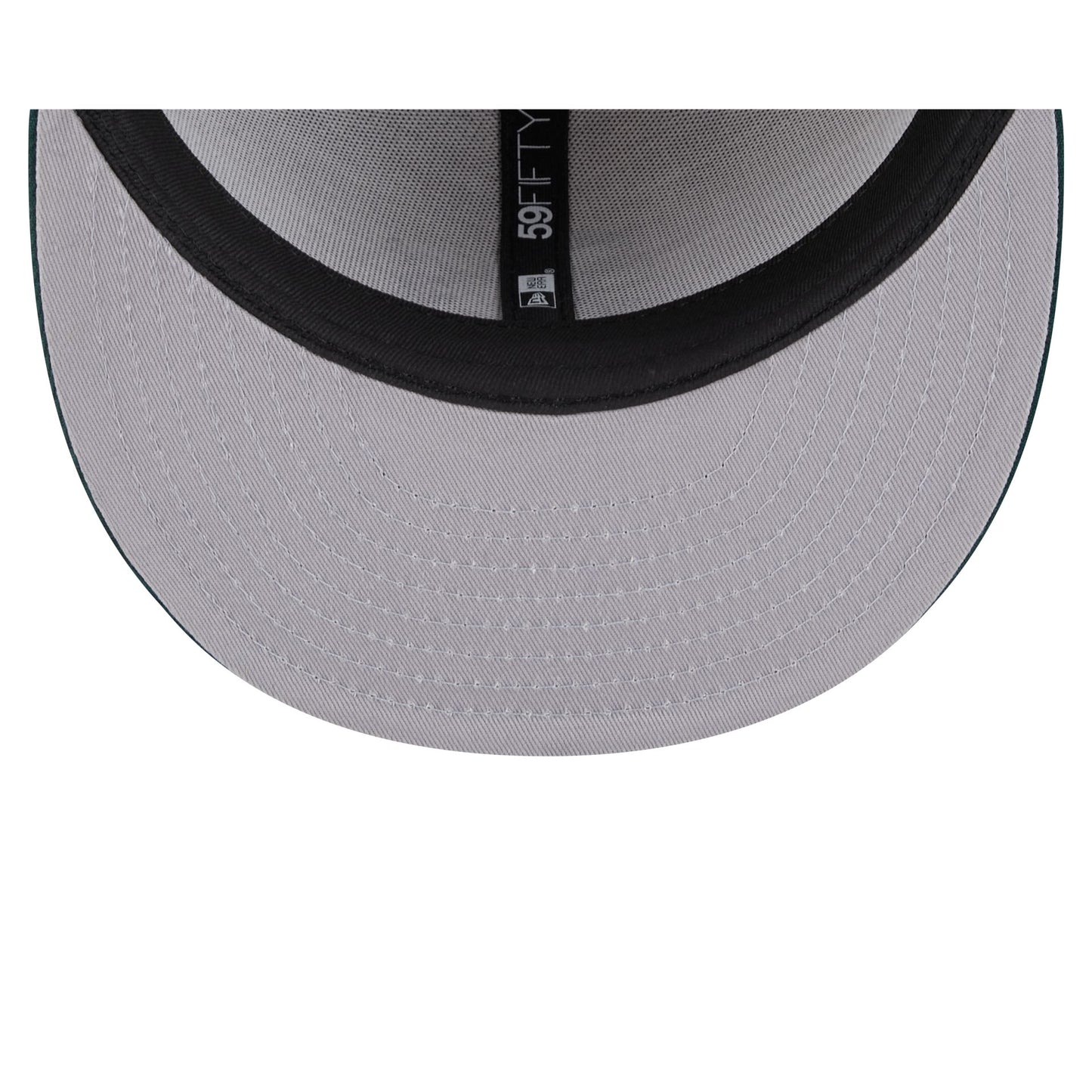 The Athletics Herringbone Moon 59FIFTY Fitted Cap features an embroidered Athletics logo at the front panels against a Moon tweed fabrication throughout and a MLB Batterman at the rear. Additional details include a woven Yorkshire Moon Tweed tag at the right-wear side and a gray undervisor.