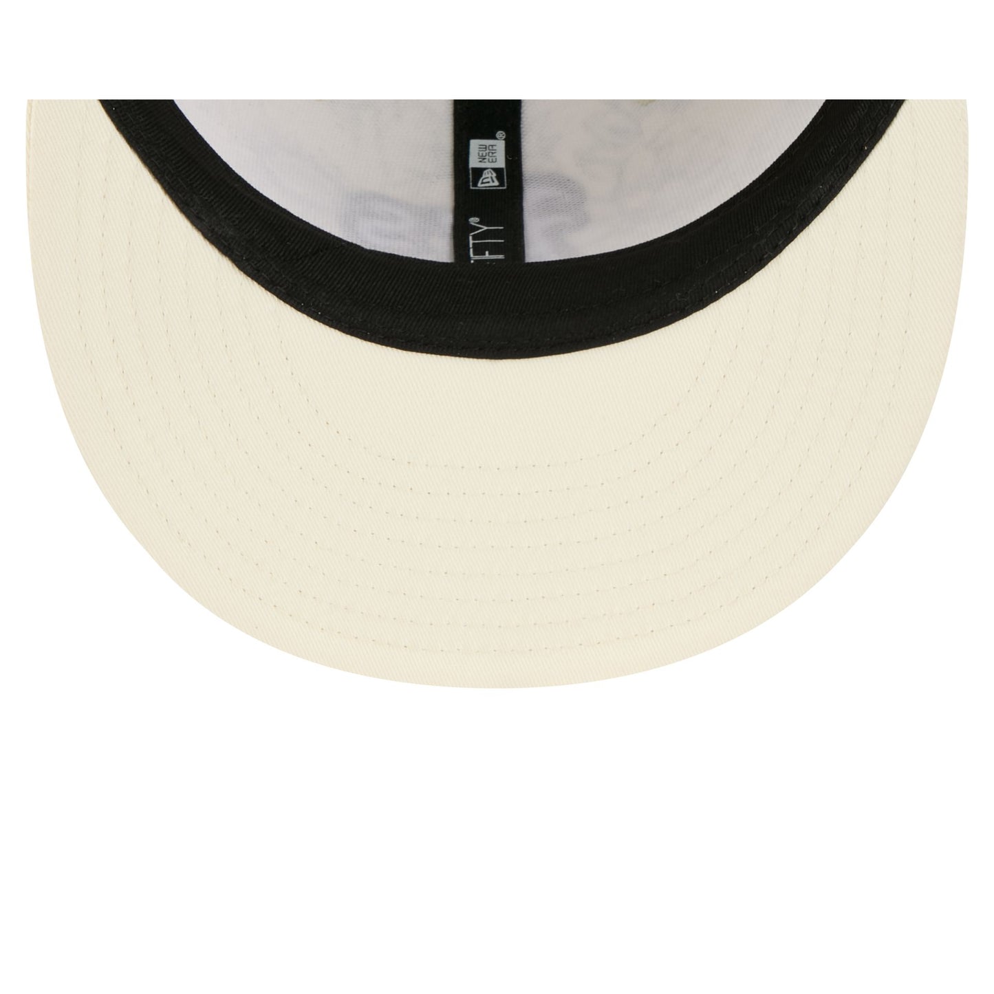 The Athletics Spring Floral 59FIFTY Fitted Cap features an embroidered Athletics logo at the front panels with a matching MLB Batterman logo at the rear and a chrome visor. Additional details include a floral print cotton twill all over fabrication and a 1989 World Series patch at the right-wear side.