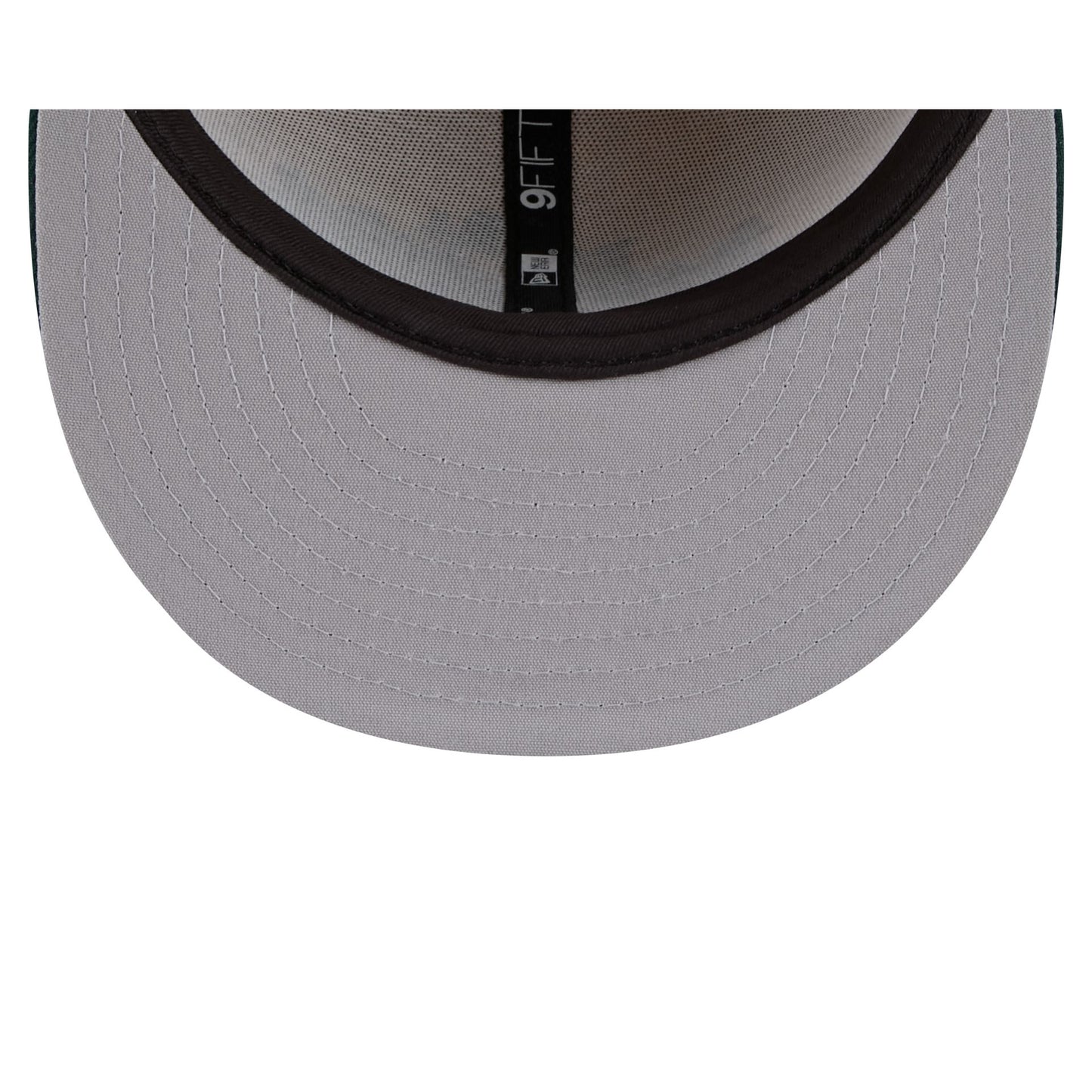 The Athletics Team Art 9FIFTY Snapback features an embroidered Athletics wordmark at the front panels with art. Additional details include a team wordmark above a snapback closure at the rear and a gray under visor.