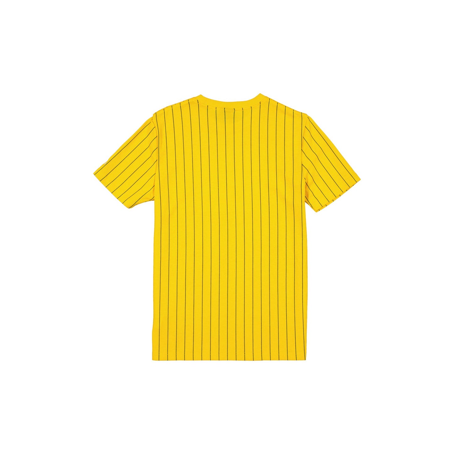 The Athletics Throwback Pinstripe T-Shirt features an embroidered Athletics logo and wordmark at the front with a New Era jock tag at the left hip.