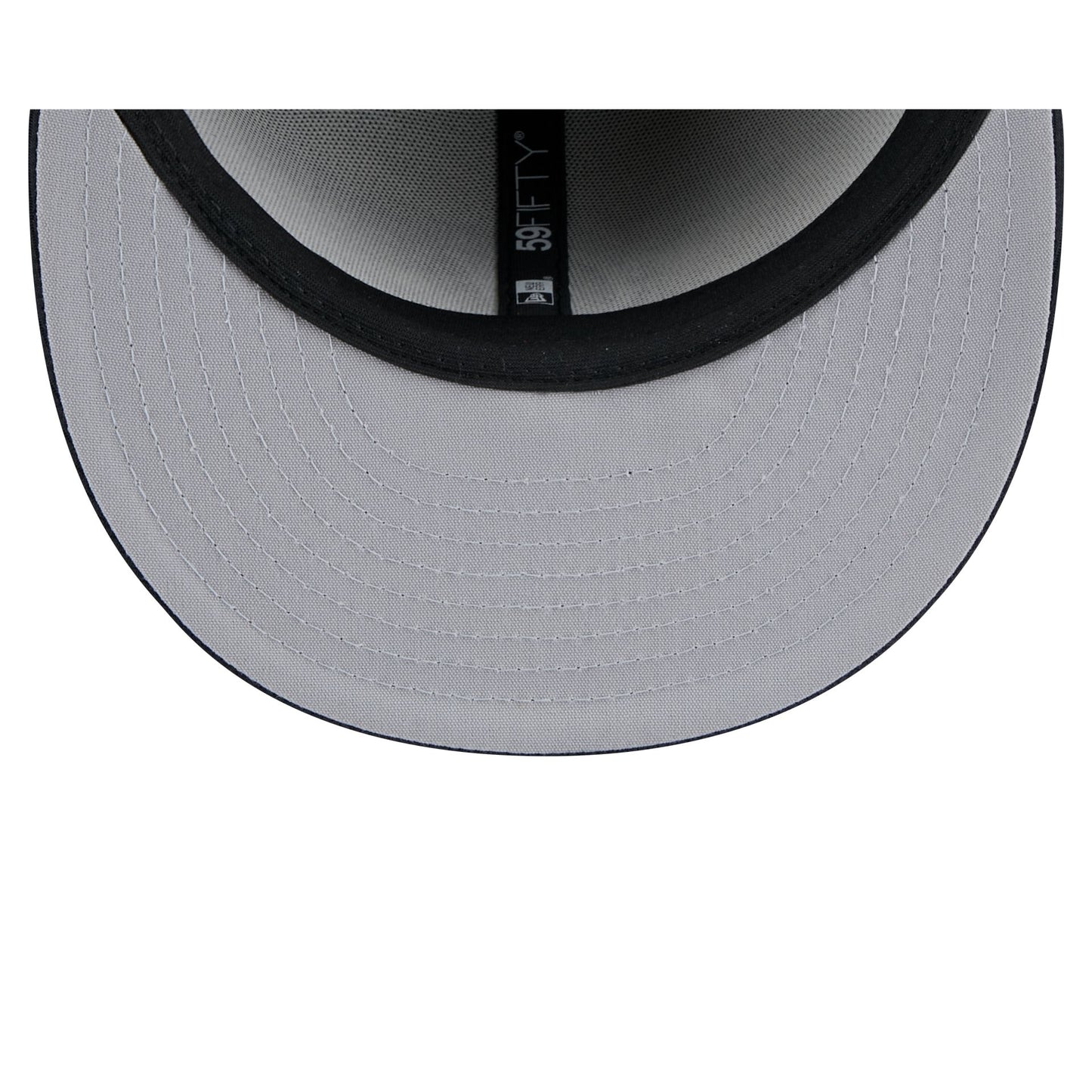 The Atlanta Braves 2025 Batting Practice Gray 59FIFTY Fitted Cap features an embroidered Braves logo at the front panels with a matching MLB Batterman logo at the rear and a gray undervisor.