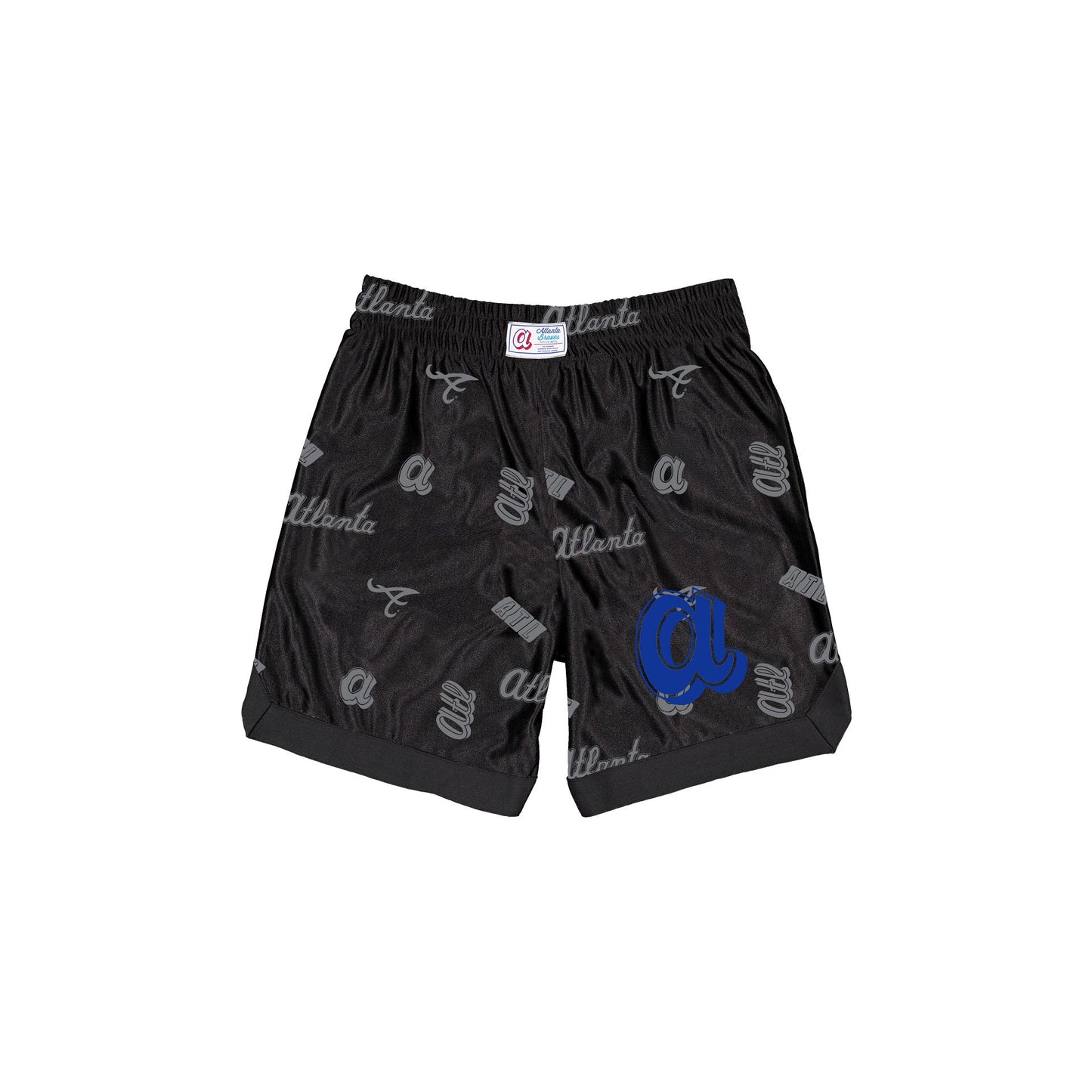 The Atlanta Braves 2026 City Connect Black Shorts feature a reflective Braves allover-printed fabric with a screen-printed logo at the left leg and a woven team jocktag at the waist.