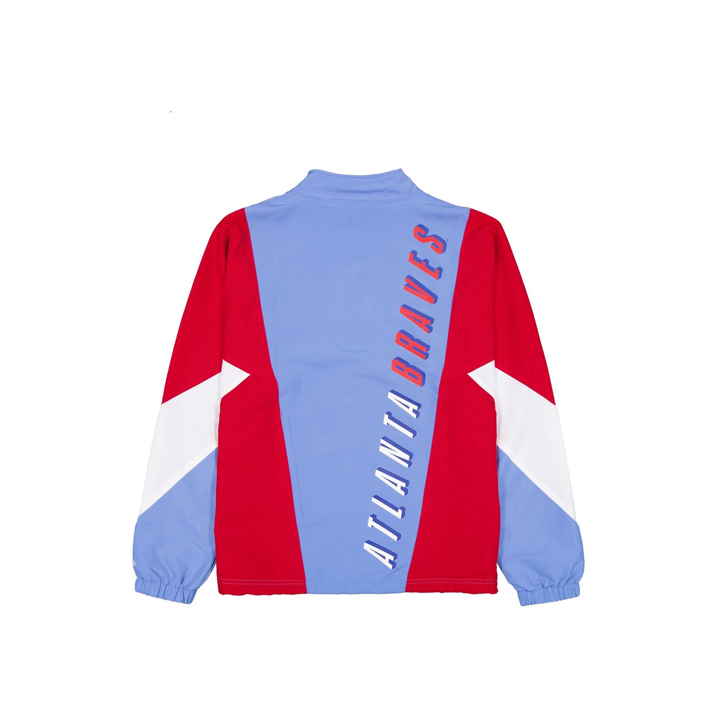 The Atlanta Braves 2026 City Connect Color Block Windbreaker features a screen-printed Braves logo at the left chest with a matching team wordmark at the rear. Additional details include a full-zip closure at the front with side zip pockets, adjustable elastic drawstrings at the waist, and a woven team jocktag at the hem.