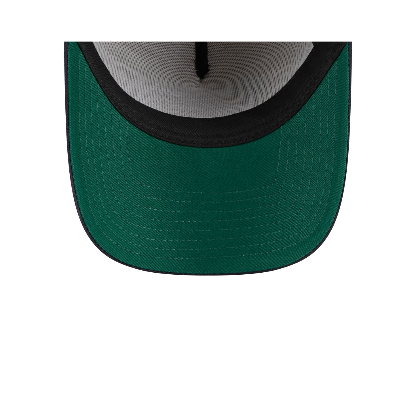 The Atlanta Braves Beige Khaki 9FORTY A-Frame Snapback features an embroidered Braves logo at the front panels with a 150th Anniversary patch at the right-wear side, a snapback closure at the rear, and a green undervisor.