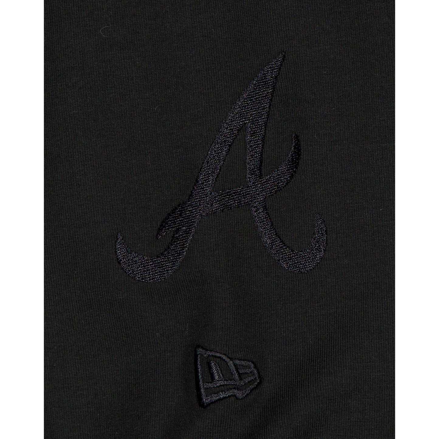 The Atlanta Braves Black on Black Logo Select Hoodie features a satin applique with a tonal stitch Braves wordmark at the chest and an embroidered team logo at the left-wear sleeve.