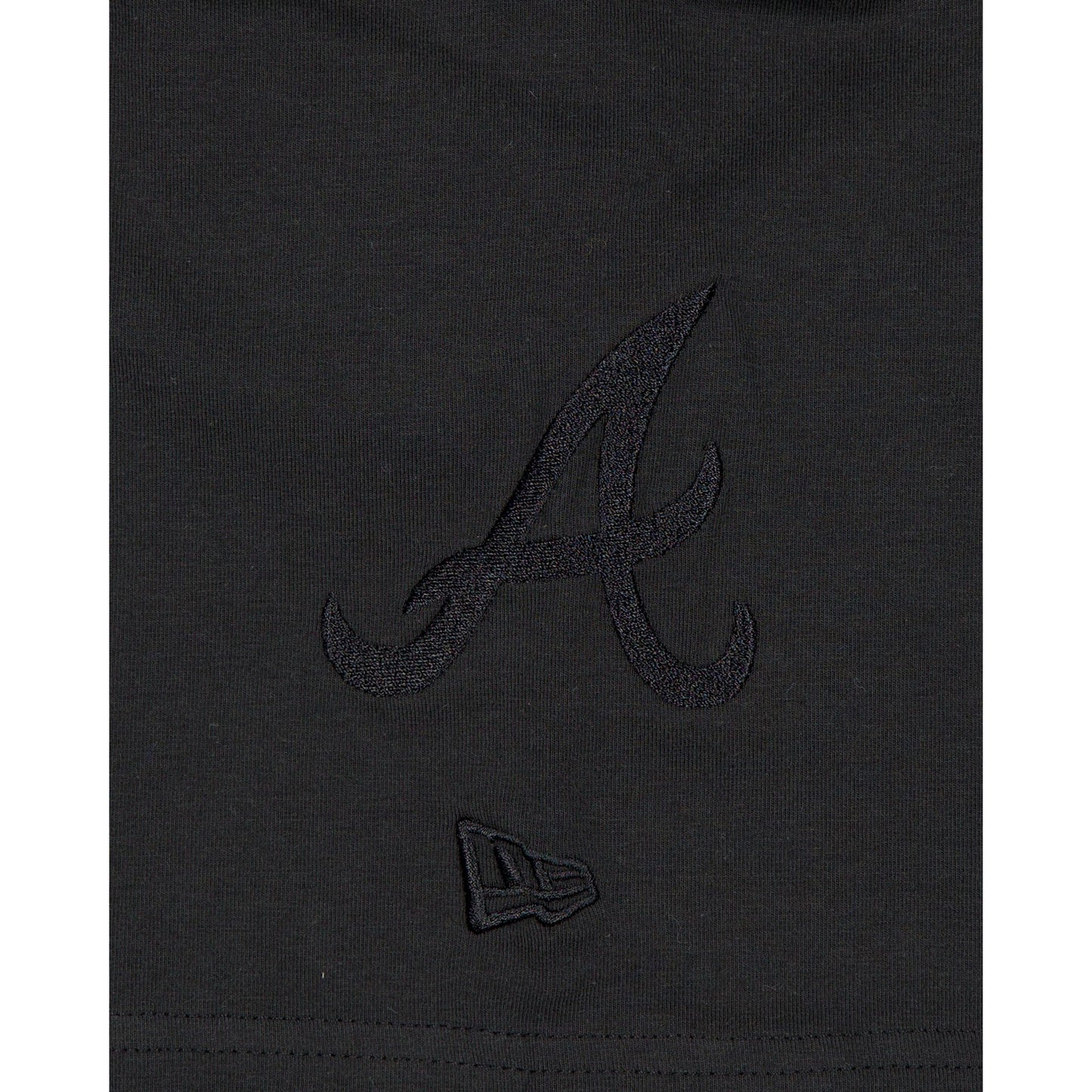 The Atlanta Braves Black on Black Logo Select T-Shirt features a satin applique with a tonal stitch Braves wordmark at the chest and an embroidered team logo at the left-wear sleeve.