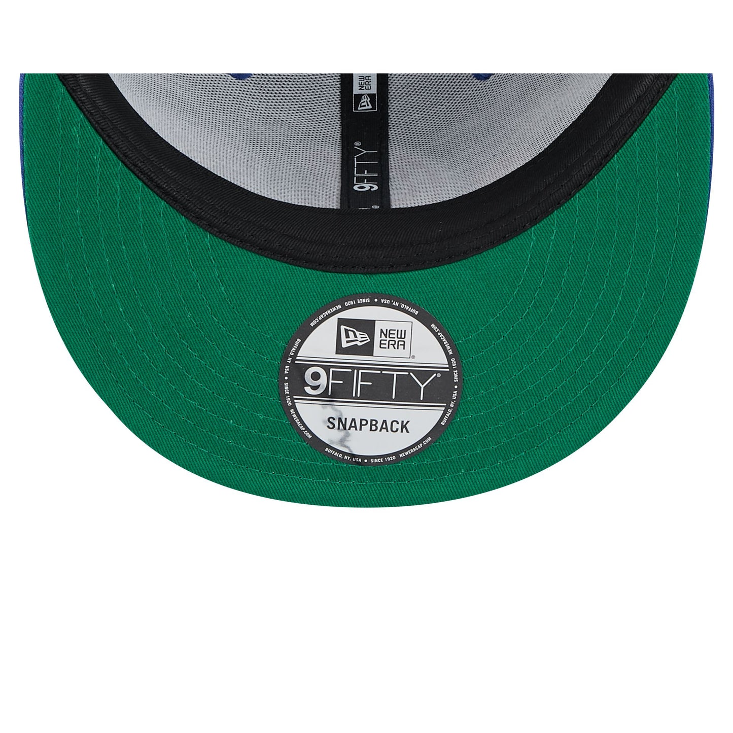 The Atlanta Braves Championship Pack 9FIFTY Trucker features an embroidered Braves logo with a 1957 World Series Champions wordmark and patch at the front panels. Additional details include a matching MLB Batterman logo above a snapback closure at the rear with a green undervisor.