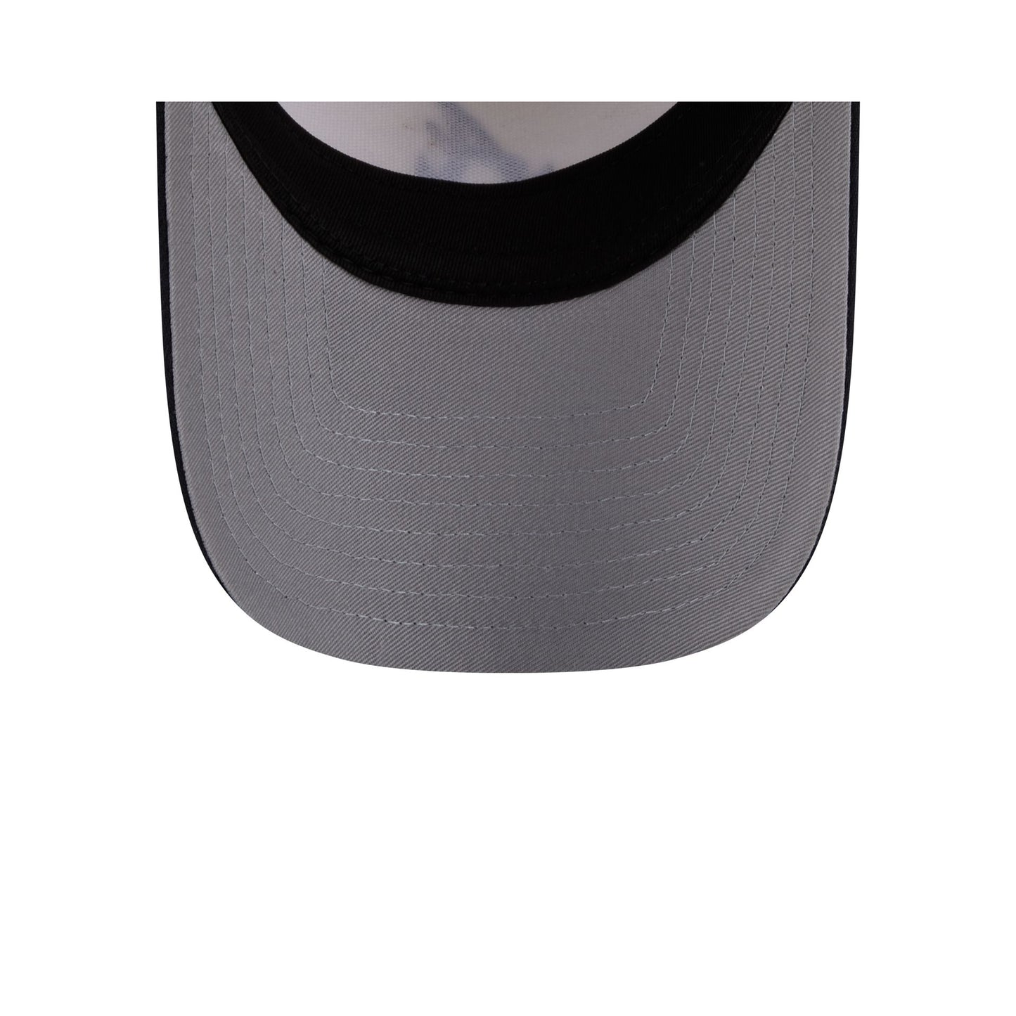 The Atlanta Braves Chrome White Arched 9FORTY A-Frame Snapback features an embroidered Braves arched logo graphic at the front panels with a team graphic at the right-wear side. Additional details include the establishment date above an adjustable snapback closure at the rear and a gray undervisor.