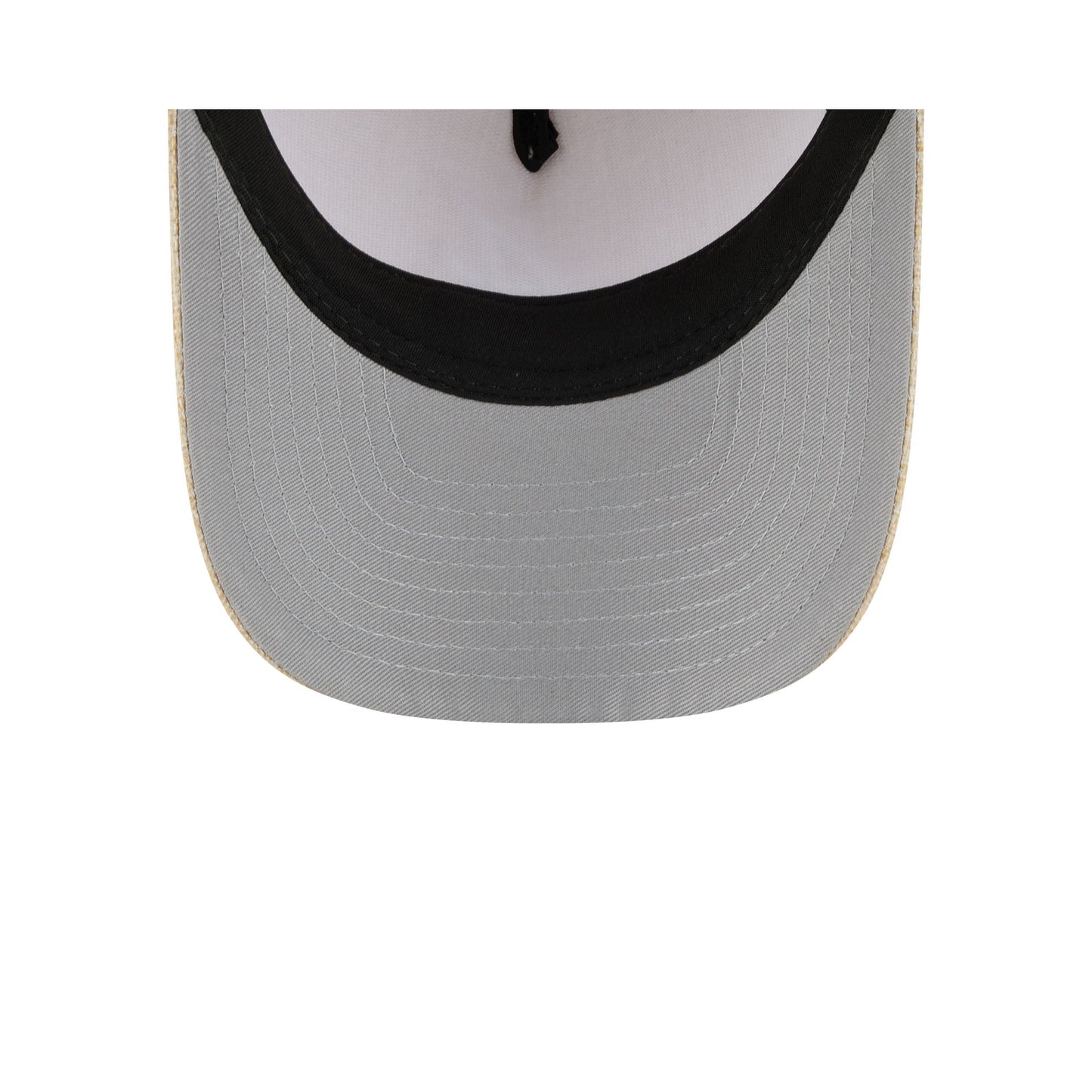 The Atlanta Braves Cotton Weave Stone 9FORTY M-Crown A-Frame Snapback features an embroidered Braves logo at the front panels with an adjustable snapback closure at the rear and a gray undervisor.