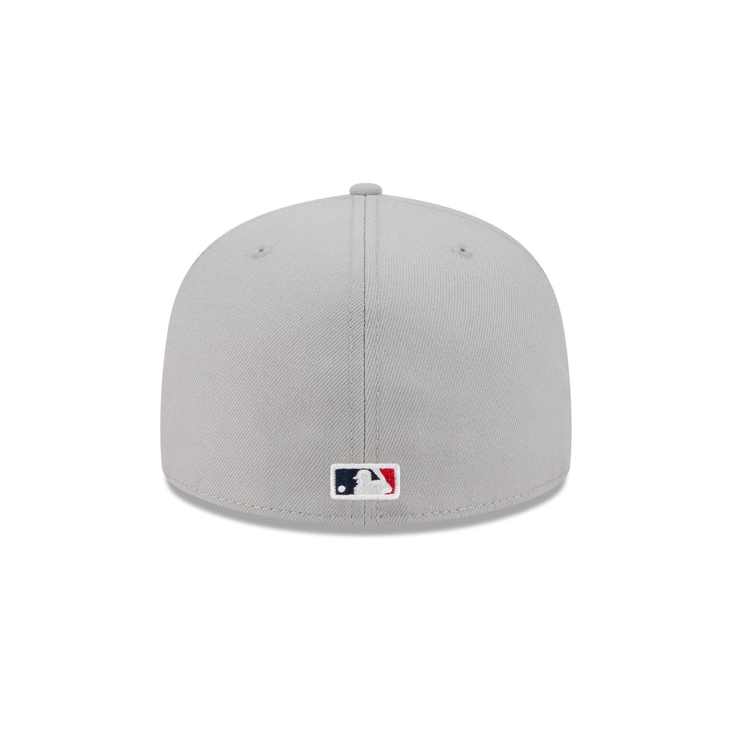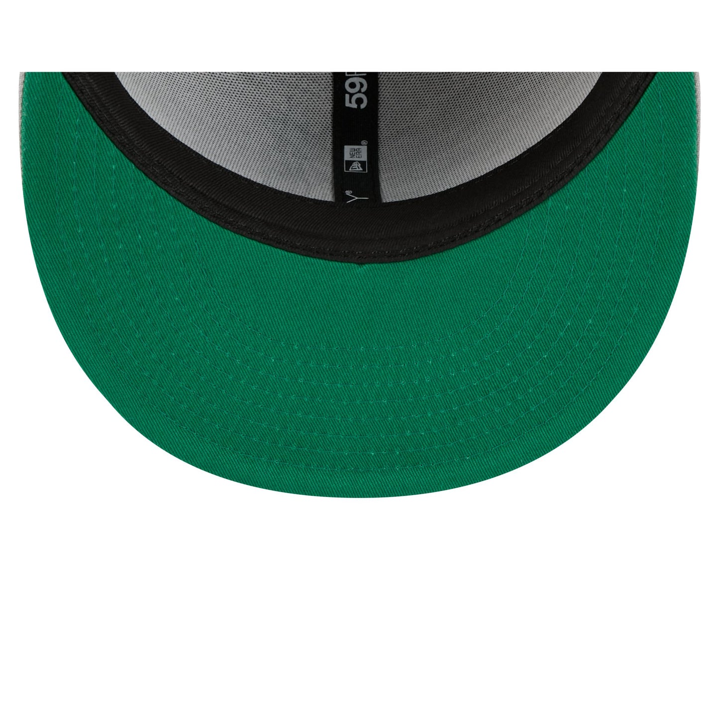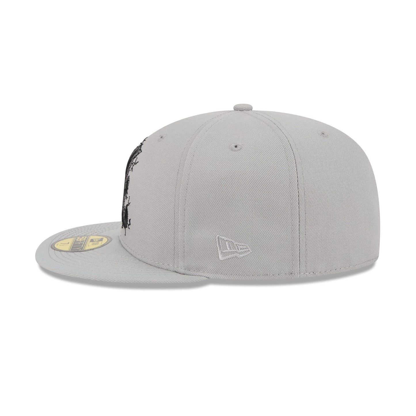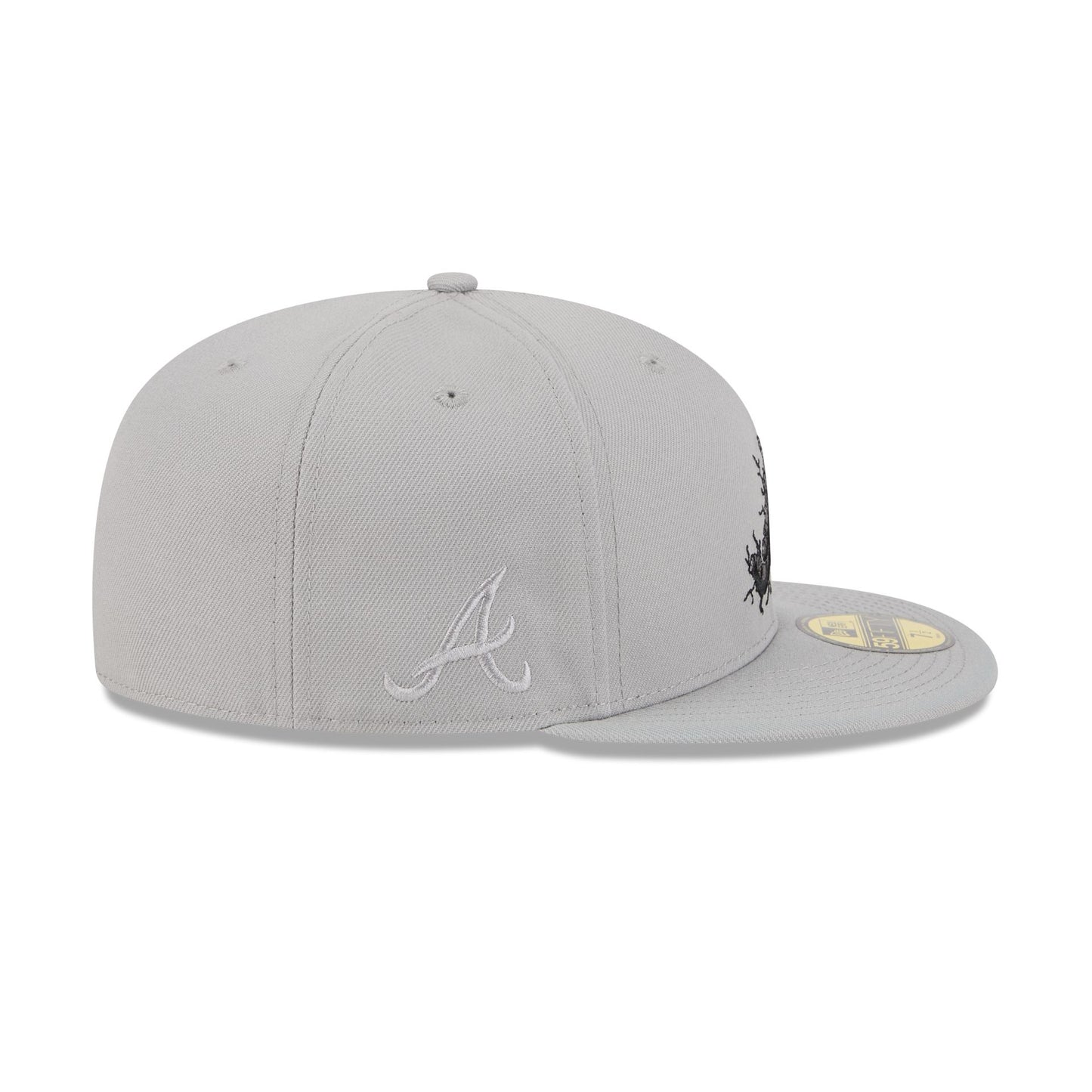 The Atlanta Braves Cracked Cement 59FIFTY Fitted Cap features an embroidered crackle effect Braves logo at the front panel with a matching MLB Batterman logo at the rear, a monochromatic team logo at the right-wear side, and a green undervisor.