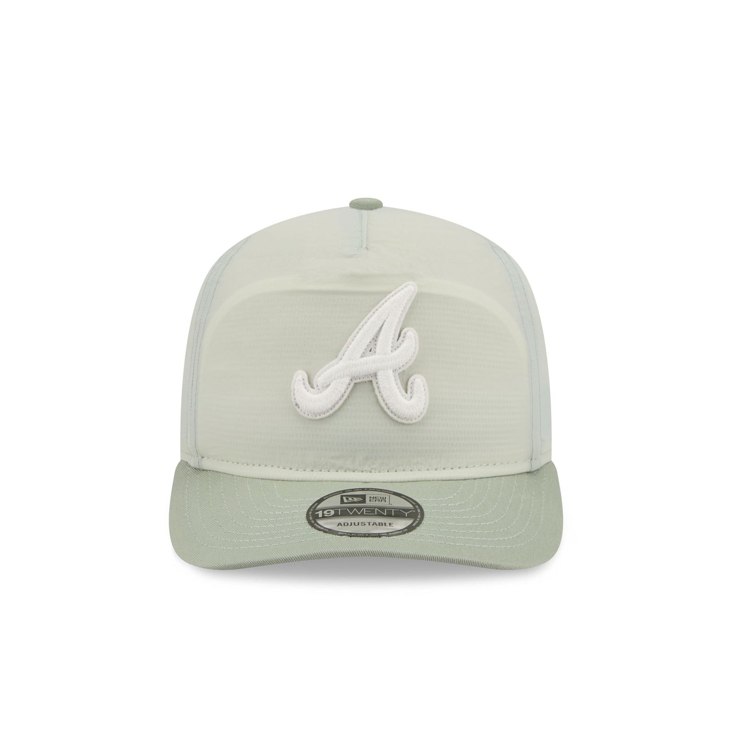 The Atlanta Braves Crinkle 19TWENTY Adjustable Cap features an embroidered Braves logo at the front panels with a nylon fabrication throughout. Additional details include the MLB Batterman logo above an adjustable snapback closure at the rear and a green undervisor.