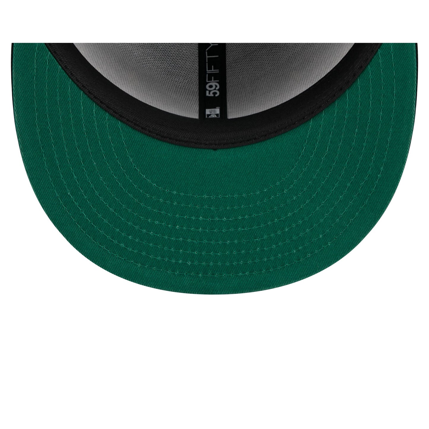 The Atlanta Braves Day of the Dead Skull & Flowers 59FIFTY Fitted Cap features an embroidered Braves logo at the front panels with Day of the Dead floral embroidery throughout the cap. Additional details include the MLB Batterman logo at the rear and a green undervisor.