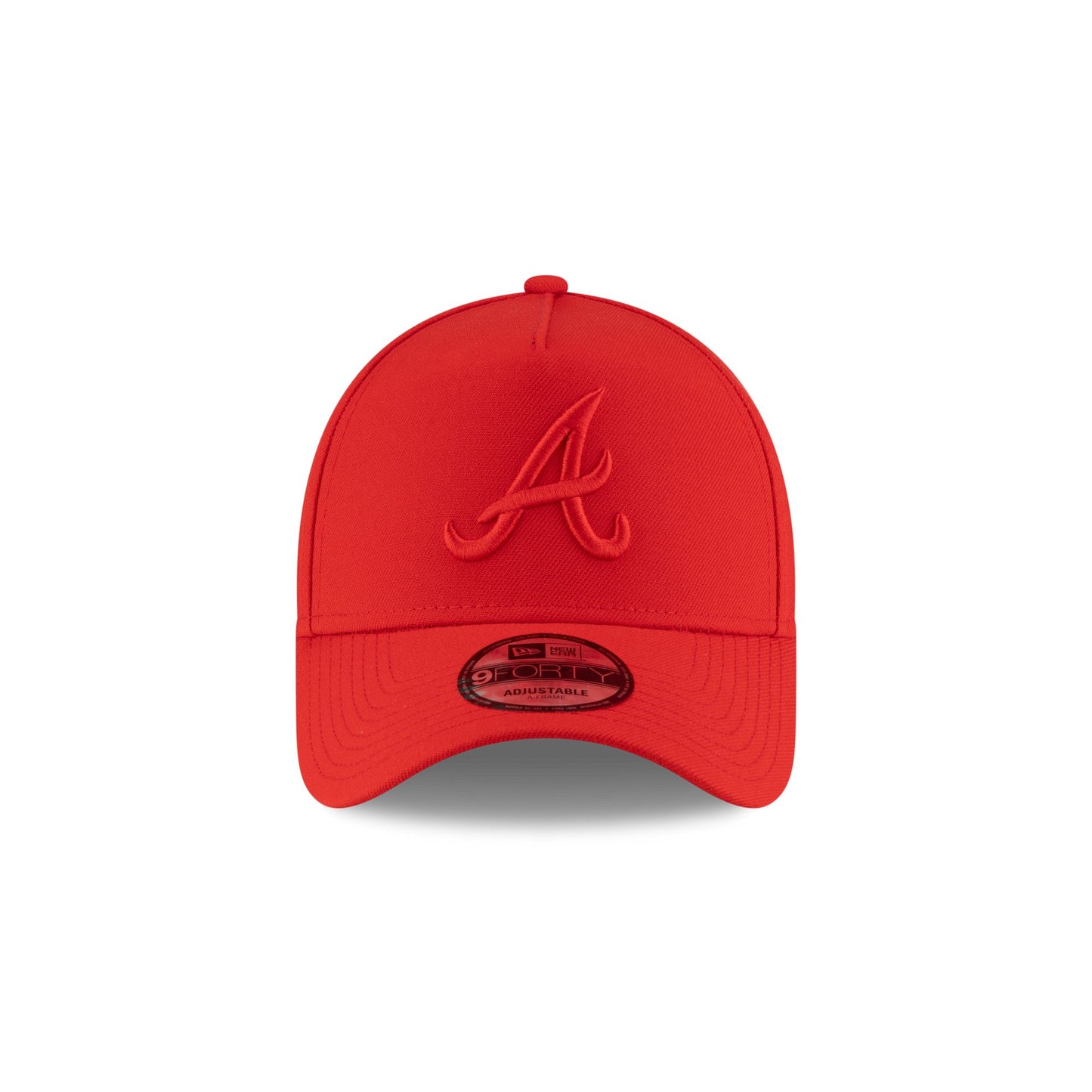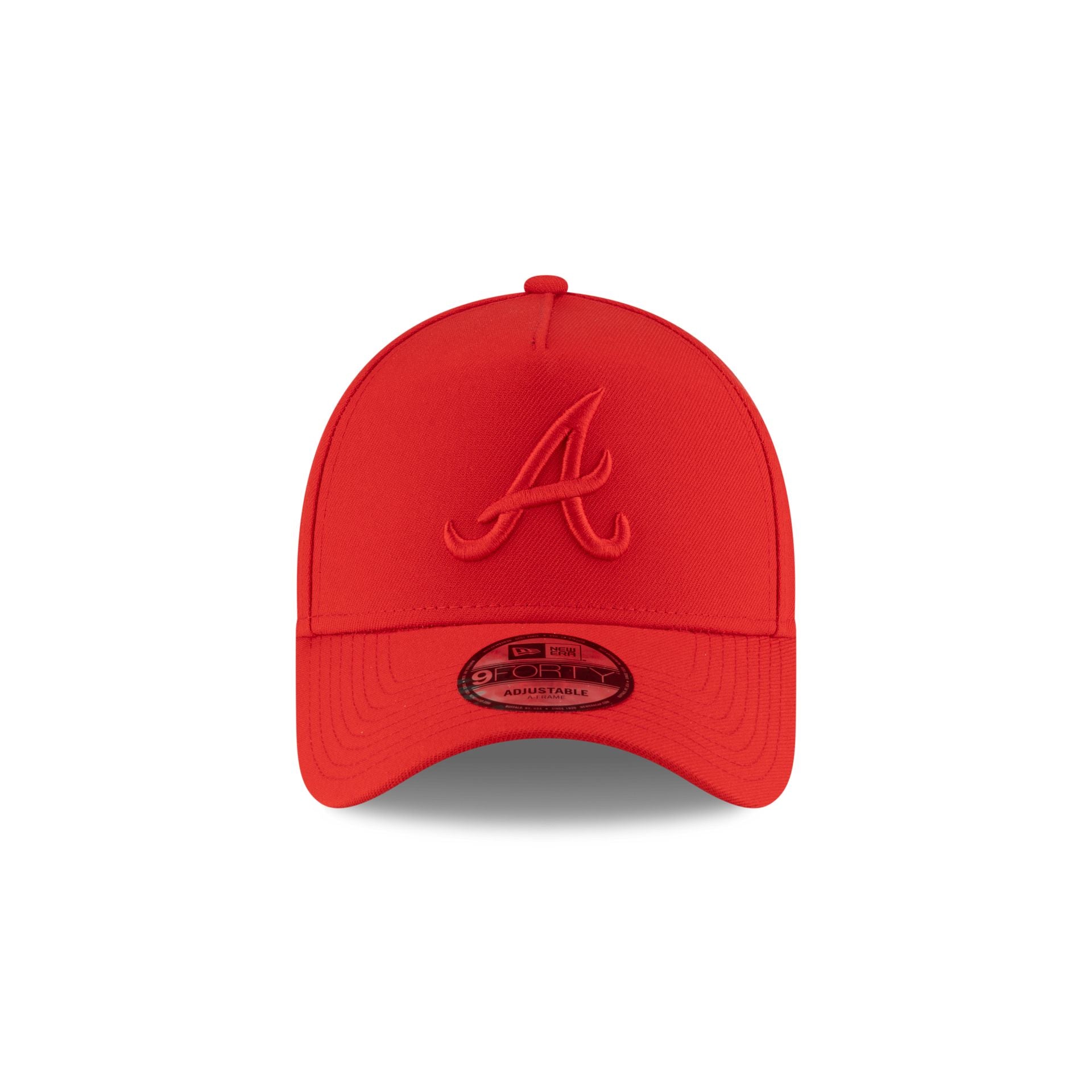 The Atlanta Braves Front Door Red 9FORTY A-Frame Snapback features an embroidered Braves logo at the front panels with a snapback closure at the rear.