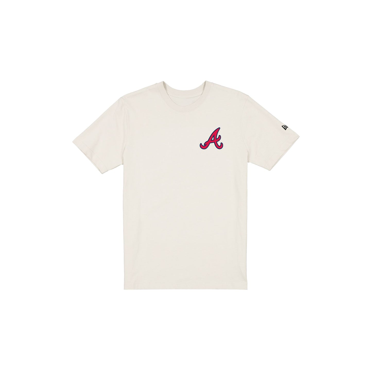 The Atlanta Braves Game Day Ballpark Hot Dog T-Shirt features a screen-printed Braves logo at the left chest with a hot dog graphic at the rear.