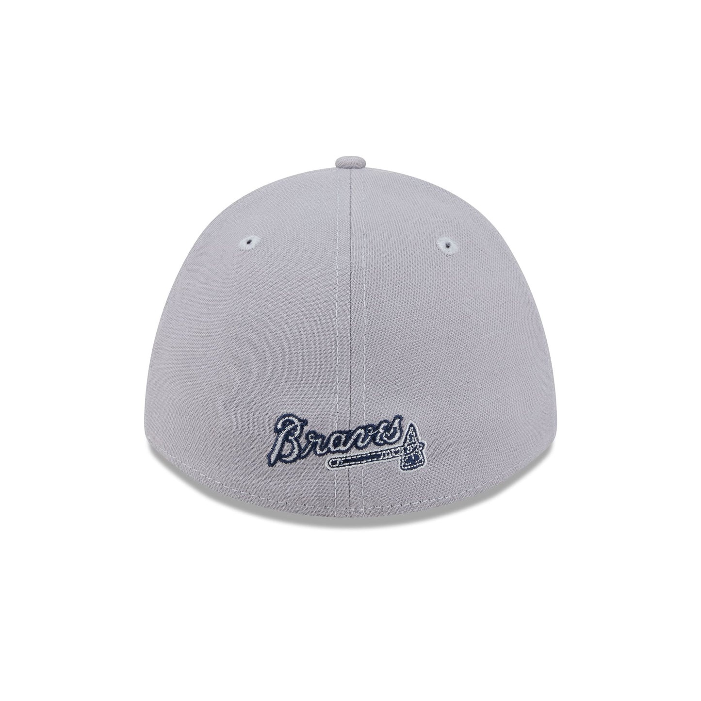 The Atlanta Braves Gray 39THIRTY M-Crown Stretch Fit Cap features an embroidered Braves logo at the front panels with a matching team wordmark at the rear and a gray undervisor. Additional details include a shorter, more modern visor with a Performance Stretch sweatband and a New Era Flag at the left-wear side.