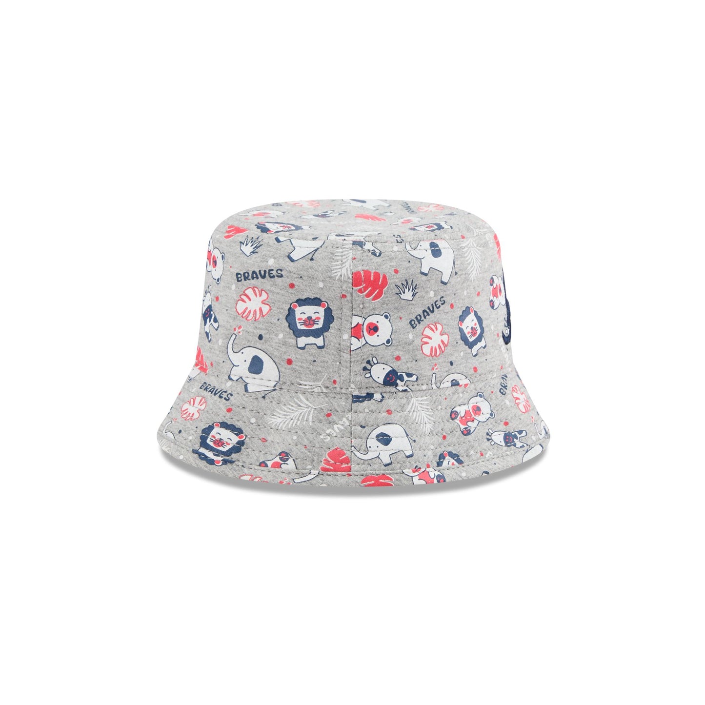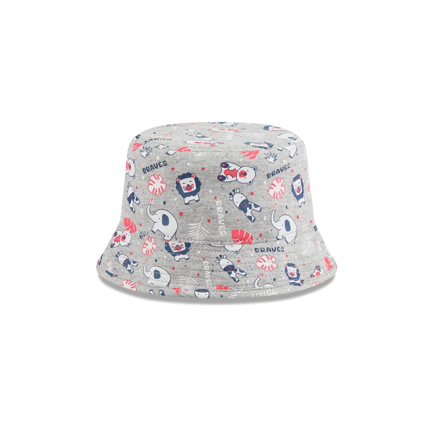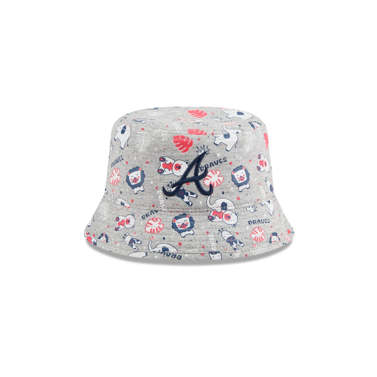 The Atlanta Braves Kids Animal Bucket Hat features an embroidered Braves logo at the front with screen-printed animals throughout.