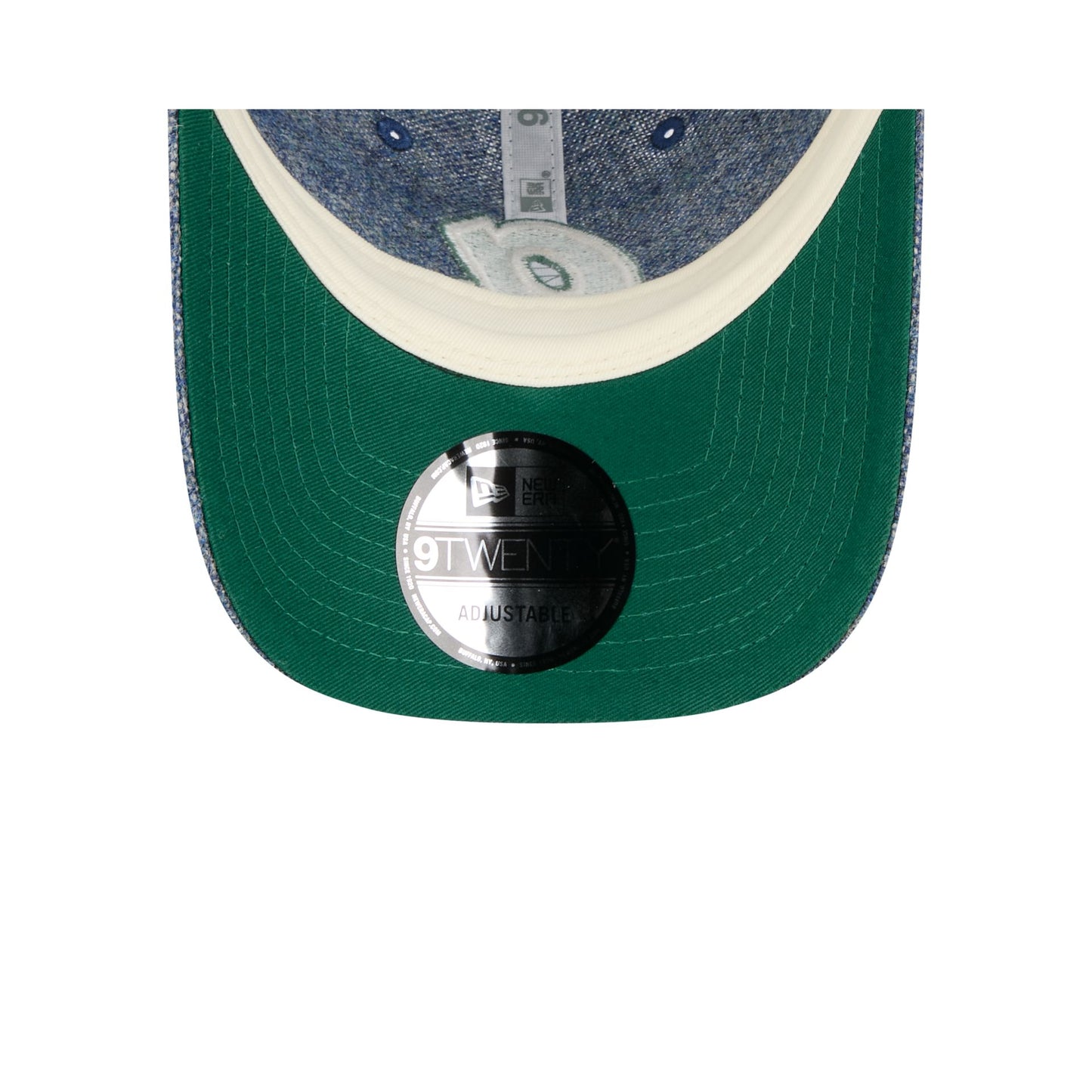 The Atlanta Braves Light Royal Shetland Moon 9TWENTY Adjustable Cap features an embroidered Braves Cooperstown logo at the front panels with a Shetland Moon fabrication throughout and a satin Moon tag woven to the right-wear side. Additional details include an adjustable D-Ring closure at the rear and a green undervisor.