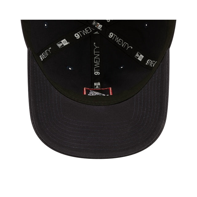 The Atlanta Braves Mini Patch Women's 9TWENTY Adjustable Cap features an embroidered Braves patch at the front panels, a team wordmark at the right-wear side, and an adjustable D-Ring closure at the rear.