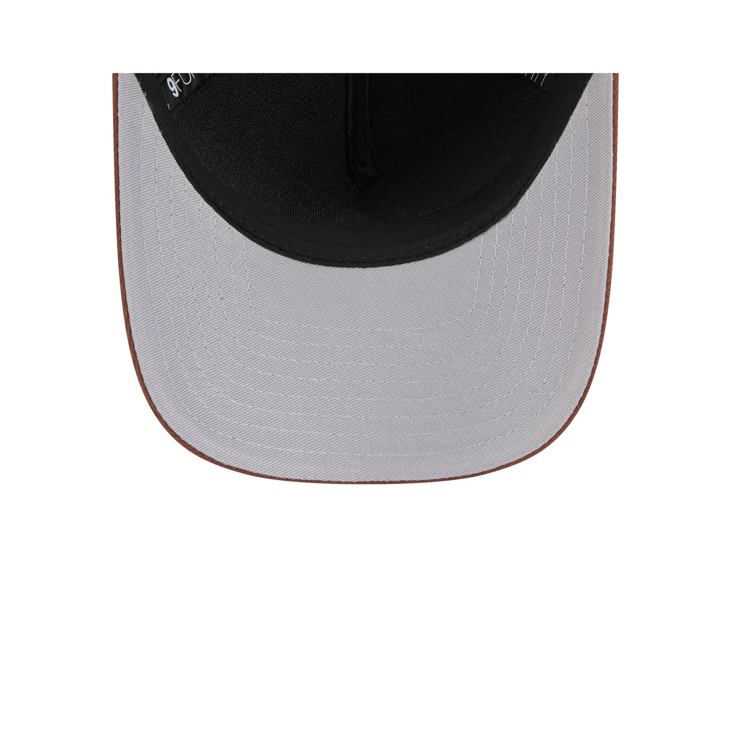 The Atlanta Braves Motorsport 9FORTY M-Crown A-Frame Snapback features an embroidered Braves racetrack logo at the front panels with a snapback closure at the rear and a gray undervisor.