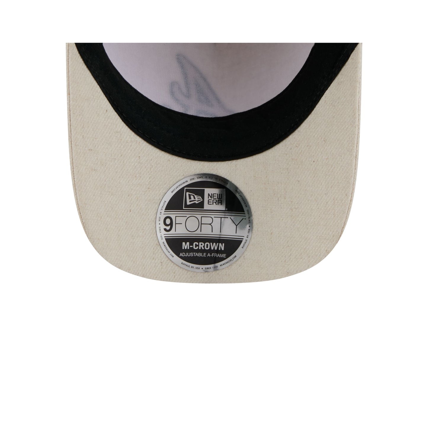 The Atlanta Braves Neutral Hemp 9FORTY M-Crown A-Frame Adjustable Cap features an embroidered Braves logo at the front panels with stripes at the visor and an adjustable hook and loop strap at the rear.