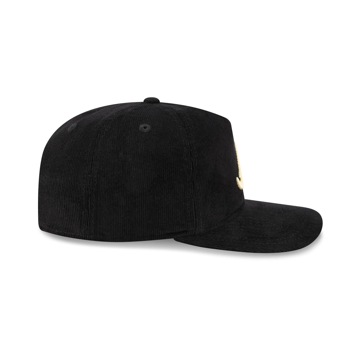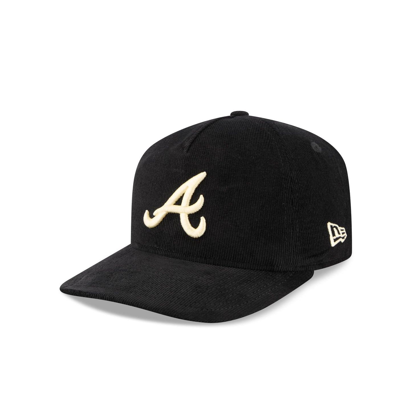 The Atlanta Braves Nostalgic Black Corduroy 19TWENTY Adjustable Cap features an embroidered Braves Cooperstown logo at the front panel with a snapback closure at the rear and a gray undervisor.