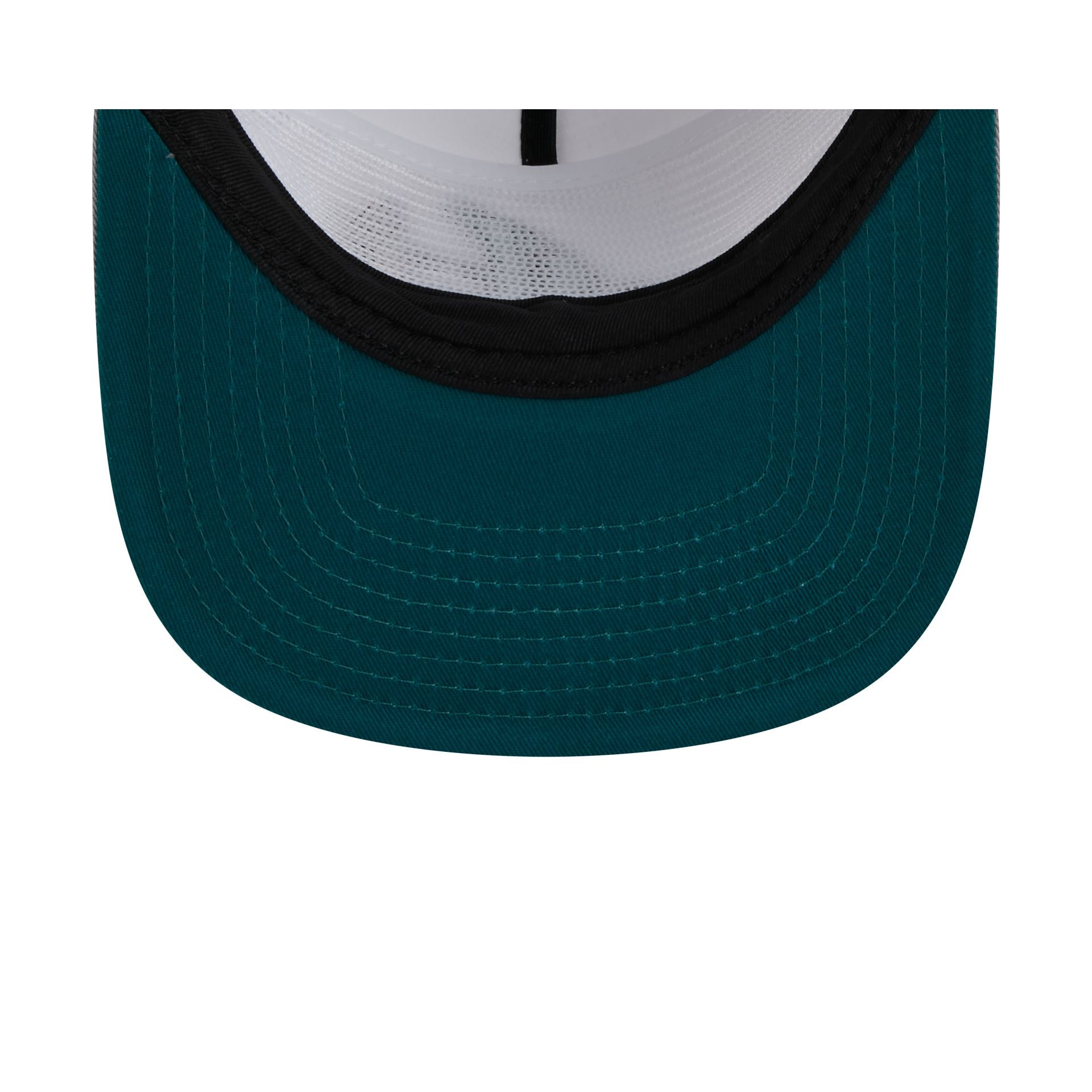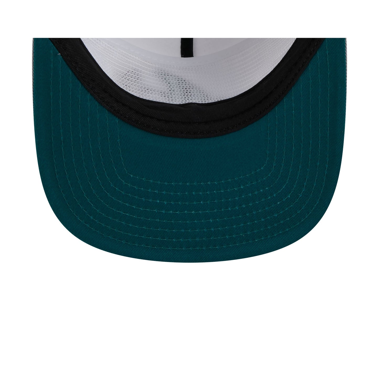 The Atlanta Braves Optic White Golfer features an embroidered Braves logo at the front panels with a matching team wordmark at the right-wear side. Additional details include a snapback closure at the rear and a teal undervisor.