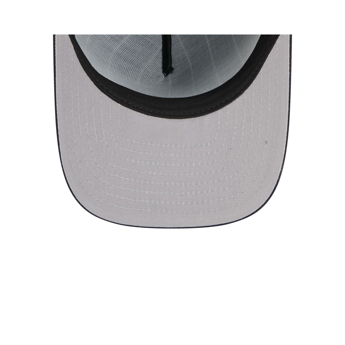 The Atlanta Braves Parallel 59FIFTY A-Frame Fitted Cap features an embroidered Braves parallel stitch logo at the front panels against a denim pinstripe fabrication throughout. Additional details include a matching MLB Batterman logo at the rear and a gray undervisor.