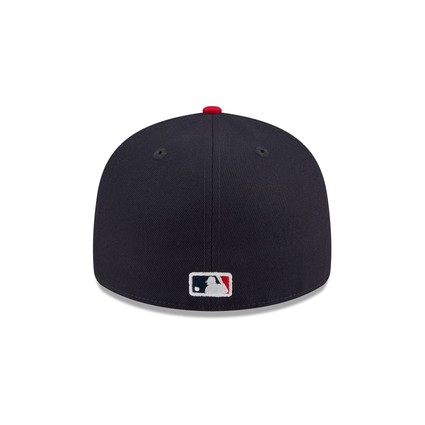 The Atlanta Braves Pre-Curve 59FIFTY Fitted Cap features an embroidered Braves logo at the front panels with a matching MLB Batterman logo at the rear, a pre-curved visor, and a gray undervisor.
