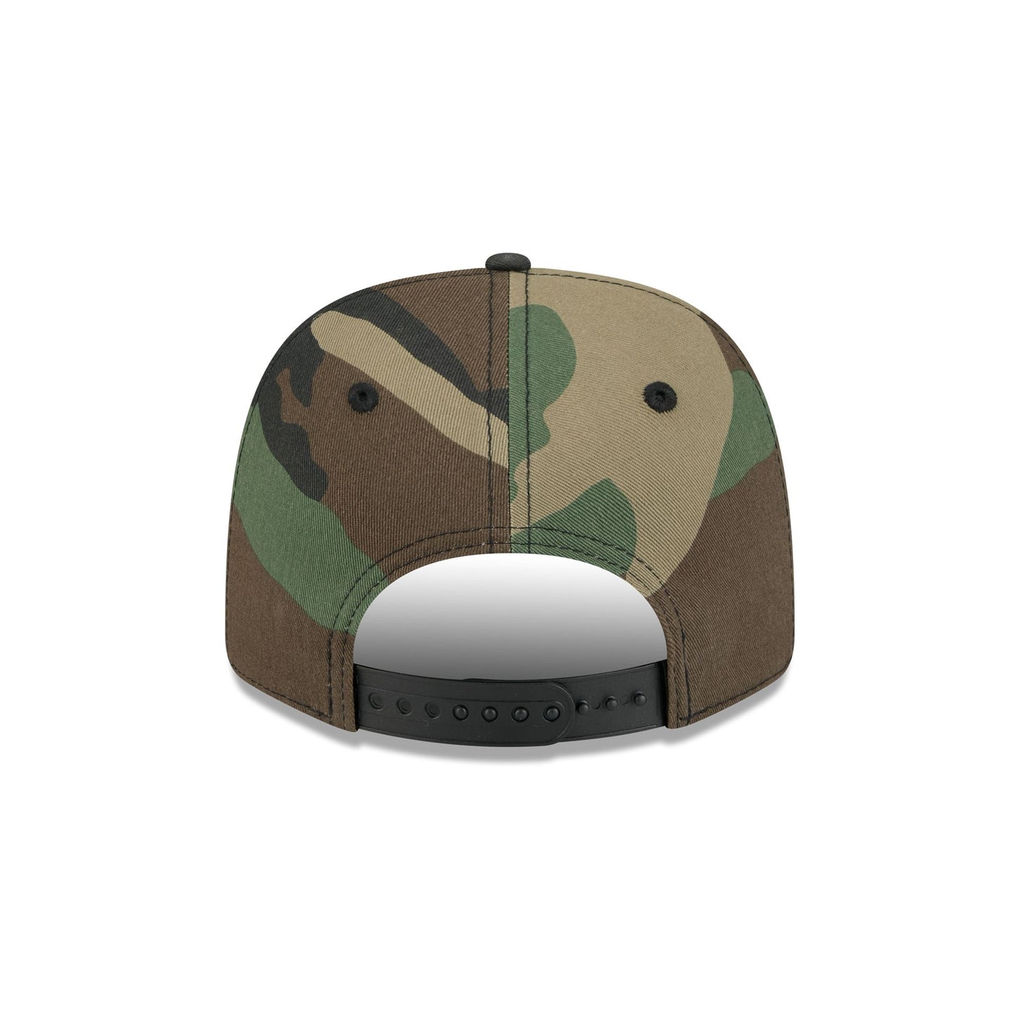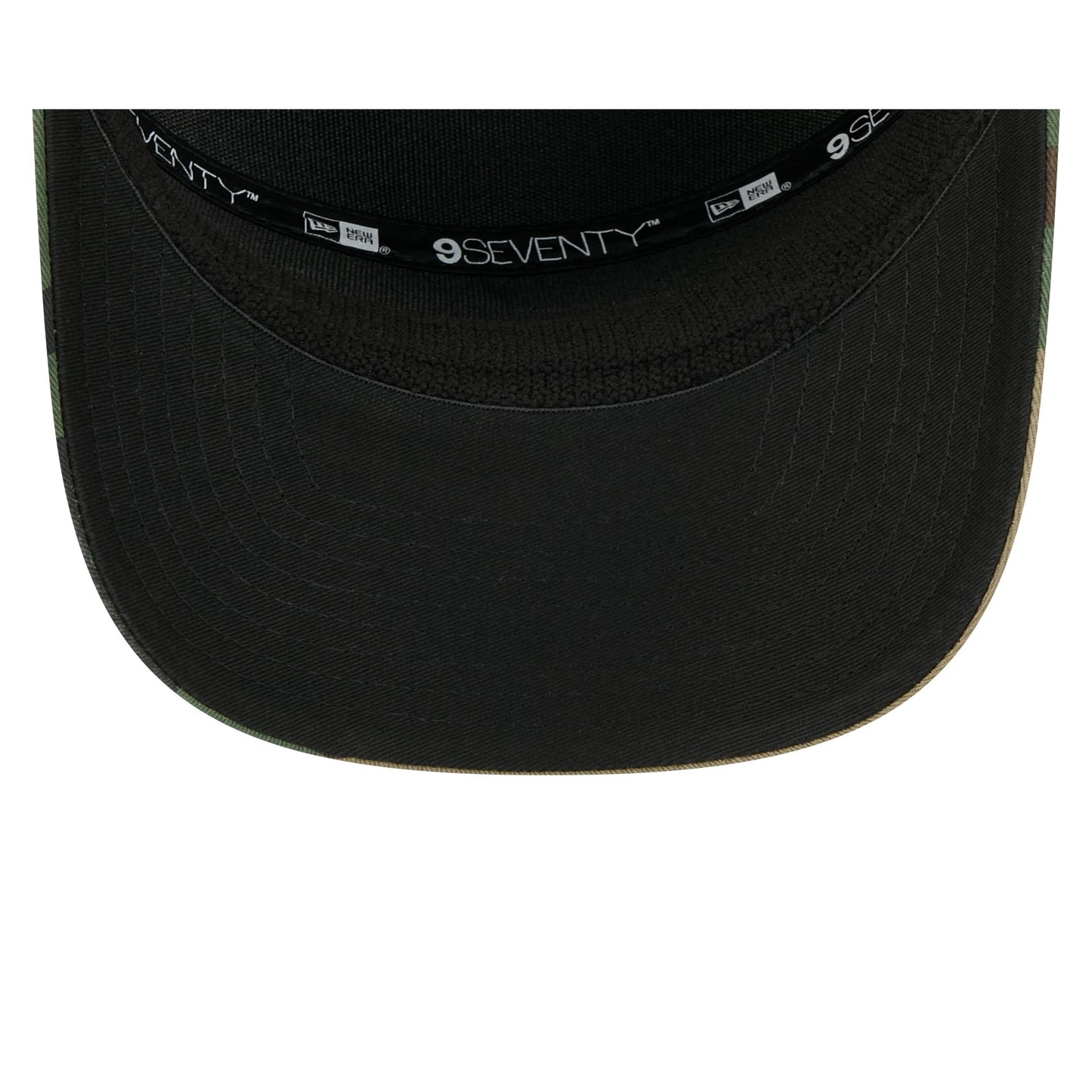 The Atlanta Braves Property of Patch Camo Split Panel 9SEVENTY Stretch-Snap features a woven "Property of" Braves patch a the front panels with a split crown construction. Additional details include an adjustable stretch-snap closure at the rear and a black undervisor.