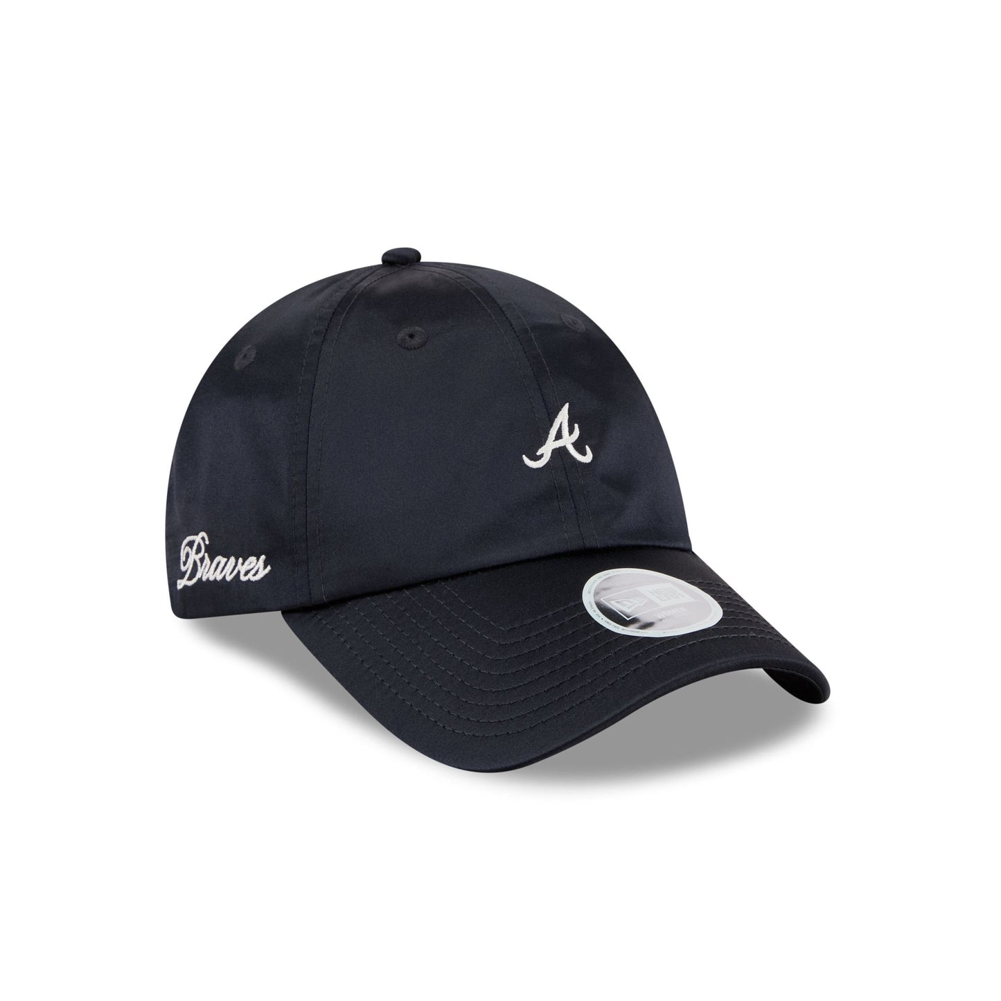 The Atlanta Braves Satin Open Back Ponytail Adjustable Cap features an embroidered Braves mini logo at the front panels against a satin fabrication throughout. Additional details include a script wordmark at the right-wear side an adjustable strap and open panel at the rear to accommodate any hairstyle.