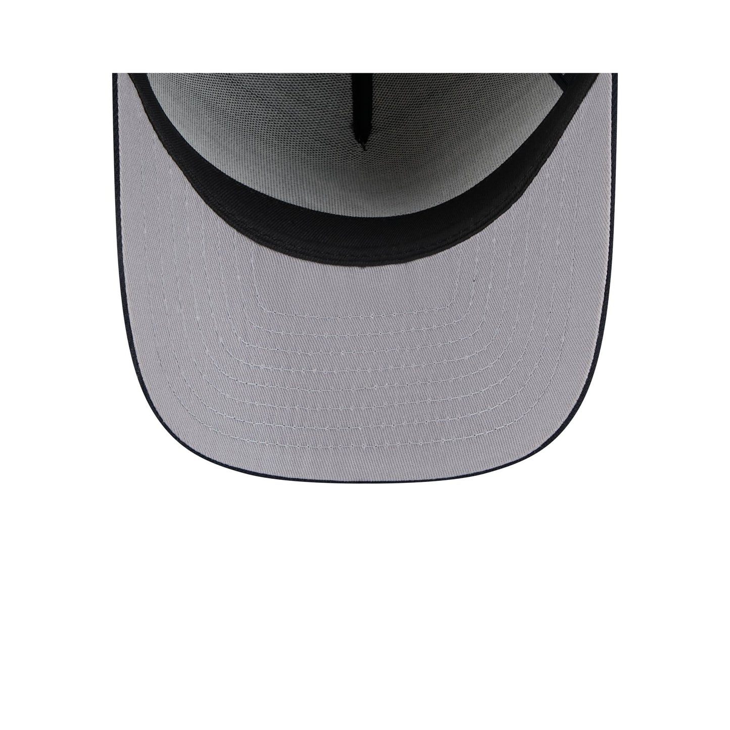 The Atlanta Braves Sidepatch 9FIFTY A-Frame Snapback features an embroidered Braves logo at the front panels with a 1995 World Series patch at the right-wear side. Additional details include a snapback closure at the rear and a gray undervisor.
