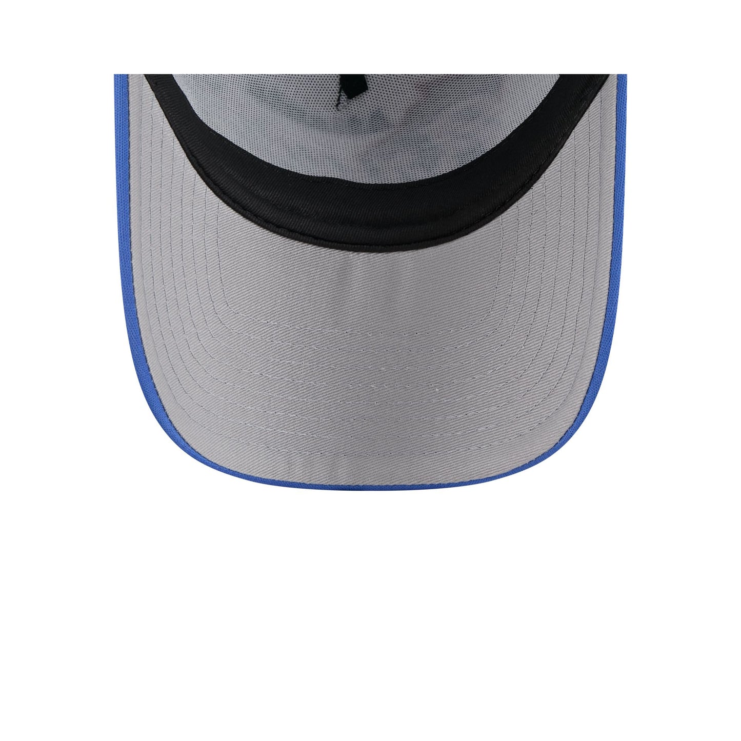 The Atlanta Braves State Flower 9FORTY A-Frame Trucker features a puff print Braves wordmark at the front panels against an embroidered state design with a team logo at the right-wear side. Additional details include a snapback closure at a mesh rear and a gray undervisor.