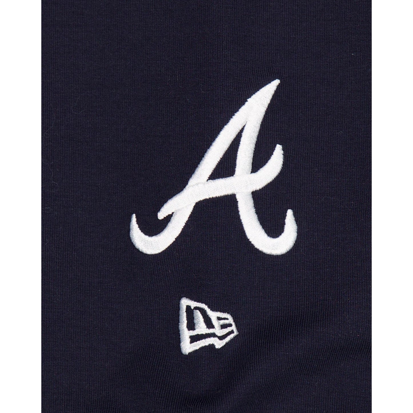 The Atlanta Braves Team Color Logo Select Hoodie features a zig zag stitched twill applique Braves wordmark at the chest with a New Era Cap jock tag at the kangaroo pocket and an embroidered team logo at the left sleeve.