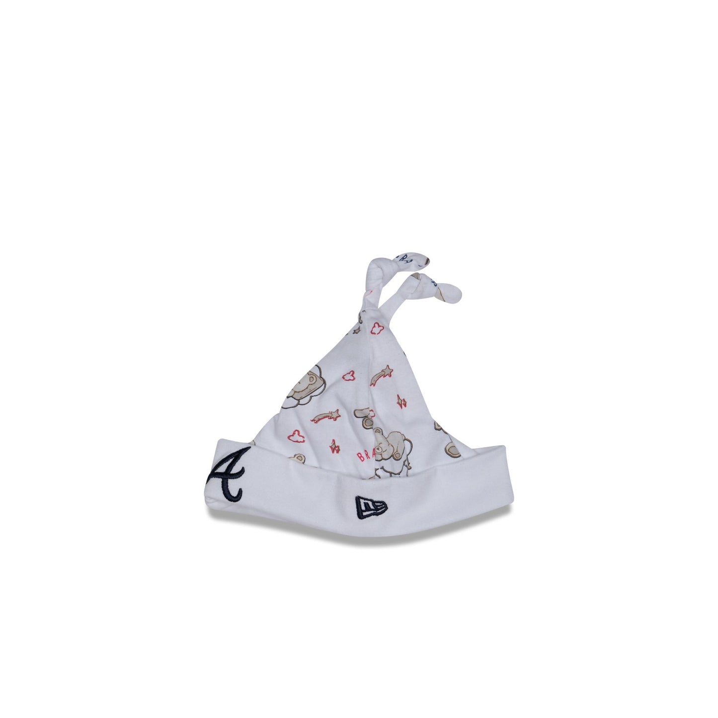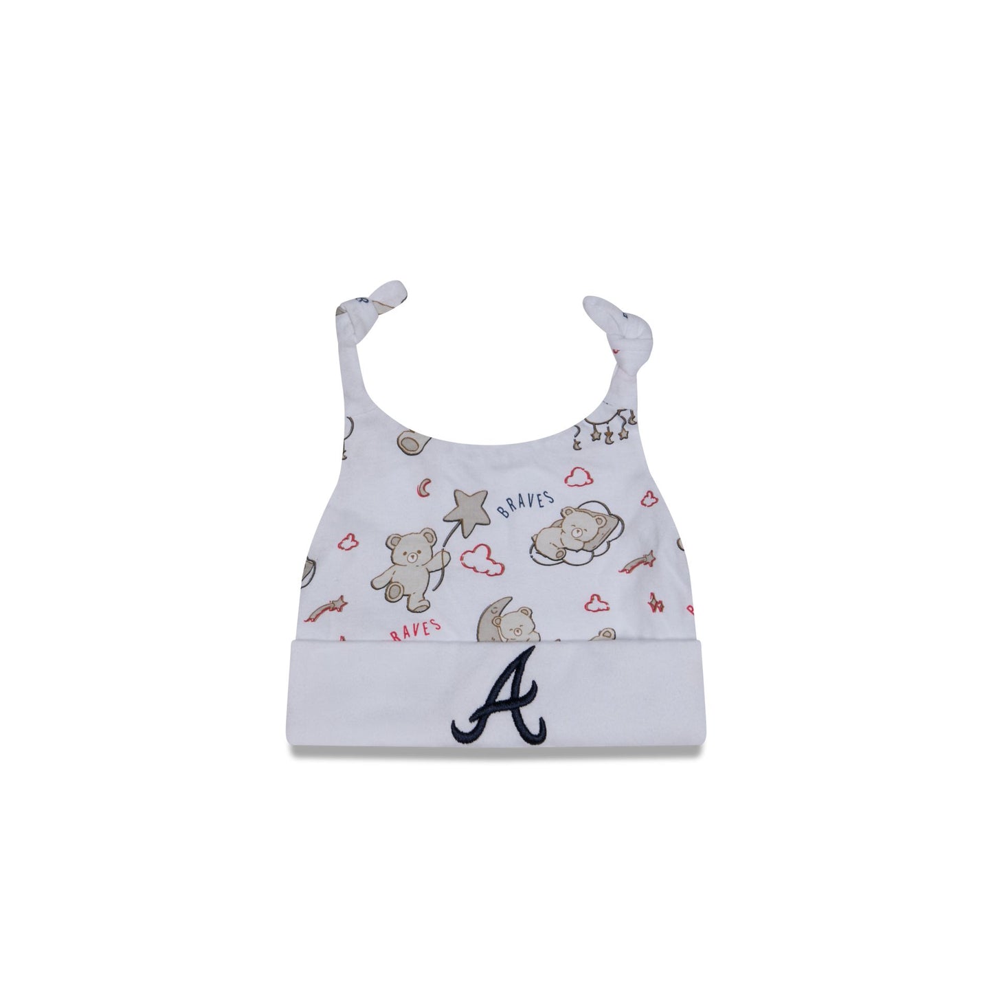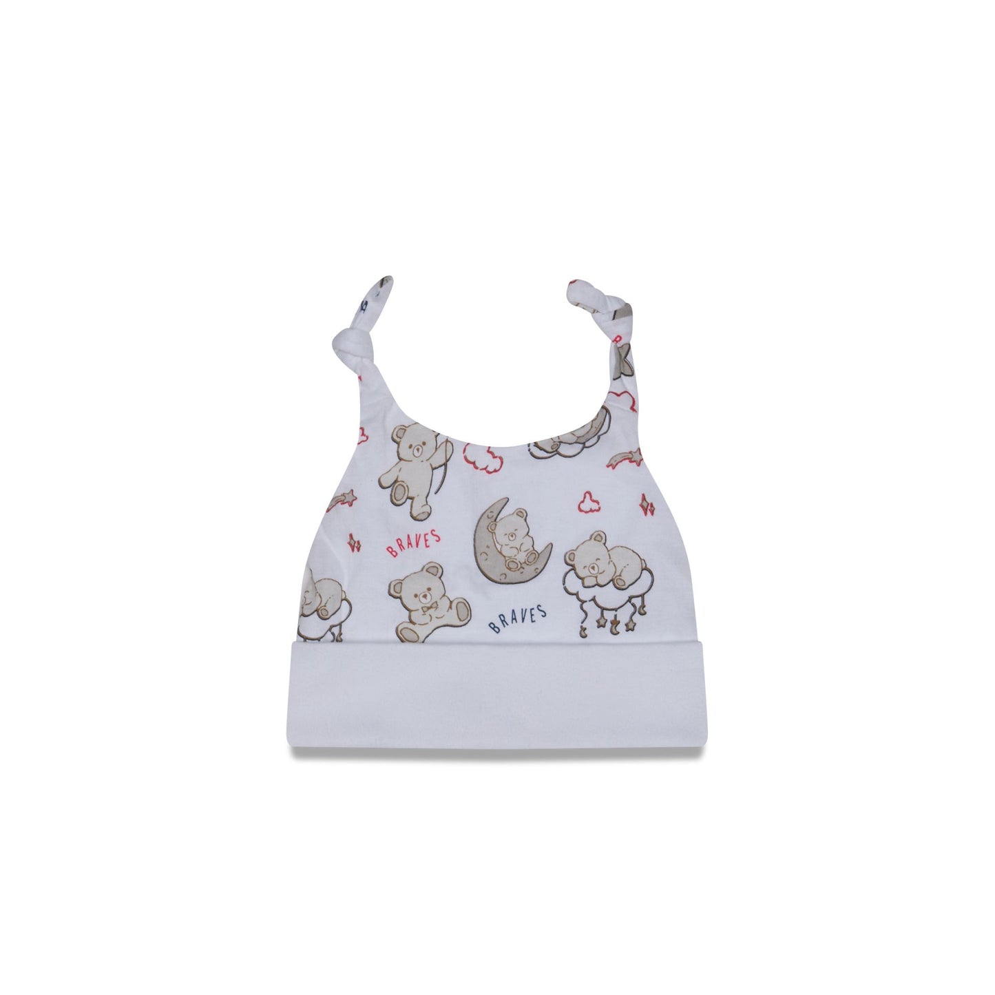 The Atlanta Braves Teddy Baby Beanie Hat features an embroidered Braves logo at the front cuff with teddy bear pattern throughout.