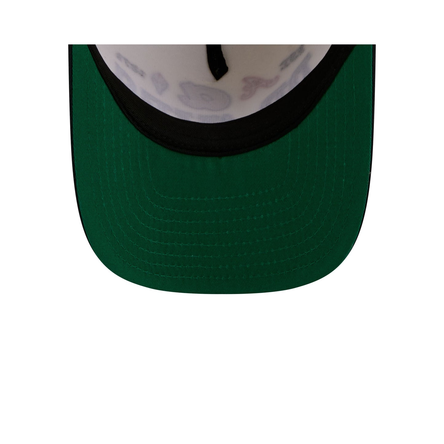 The Atlanta Braves Three Hit Chrome White 9FIFTY A-Frame Snapback features an embroidered Braves graphic at the front panels with an adjustable snapback closure at the rear and a green undervisor.