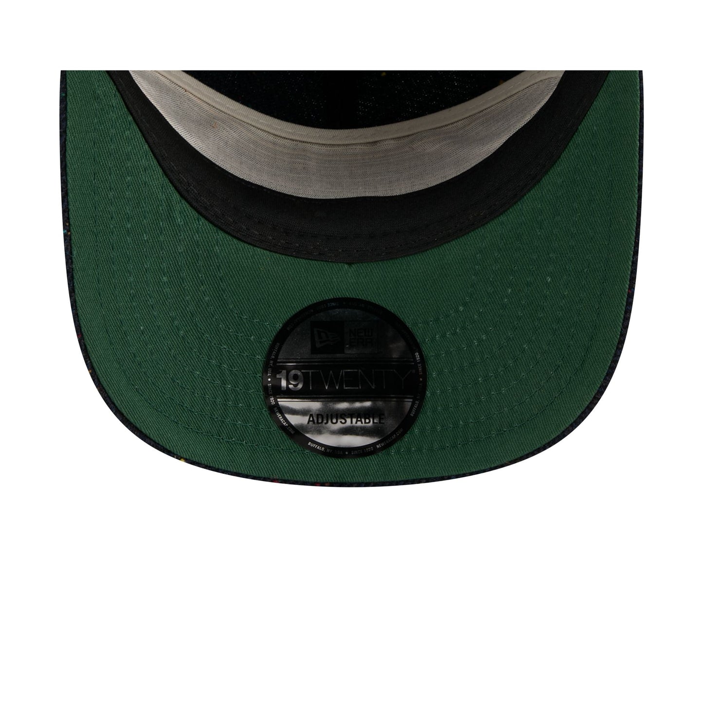 The Atlanta Braves Three Looms Speckled Wool 19TWENTY Adjustable Braves patch at the front with an adjustable buckle closure at the rear and a green undervisor.